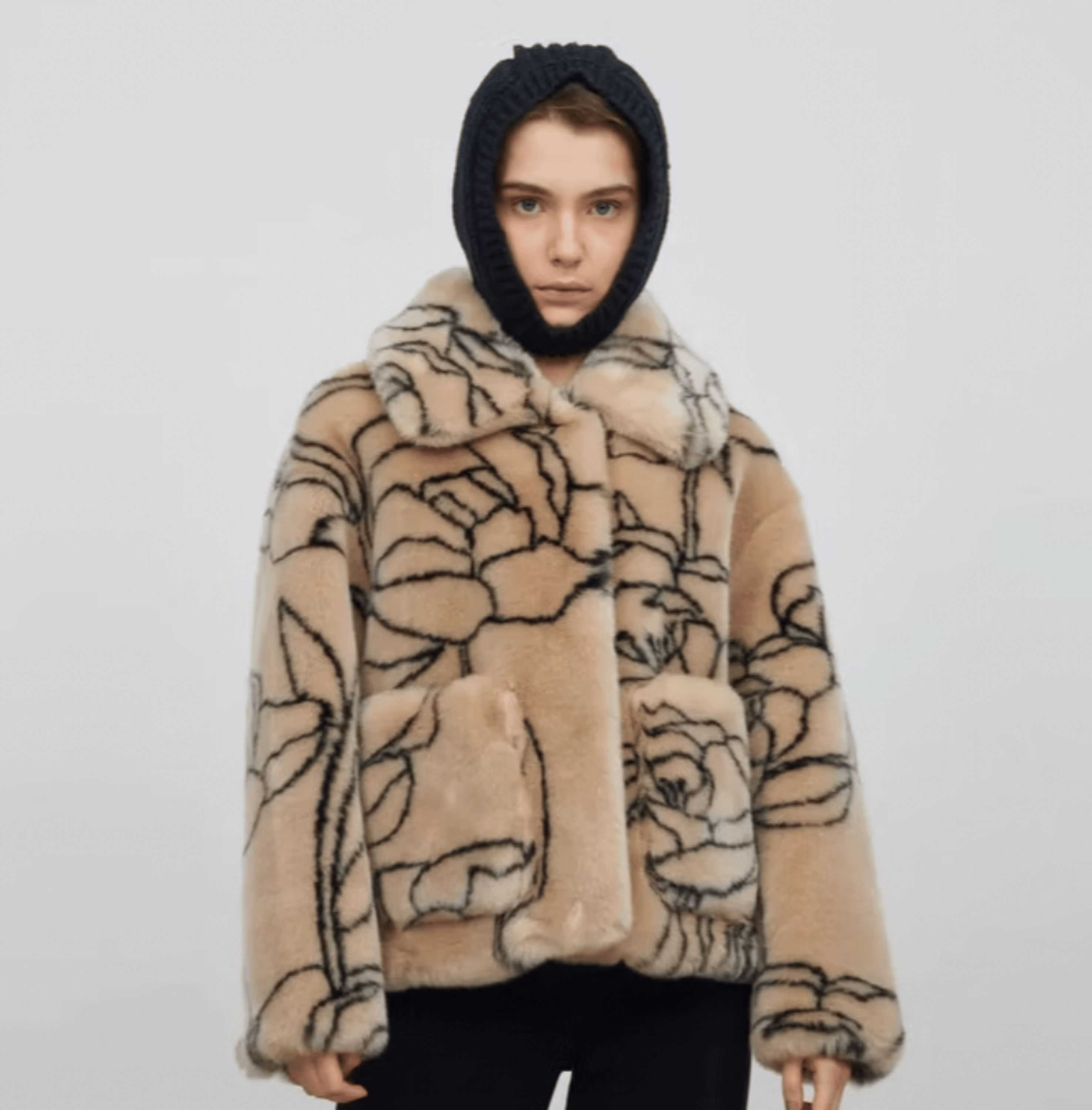 Abstract floral button front jacket. - Tan - 50% acrylic - 50% modacrylic