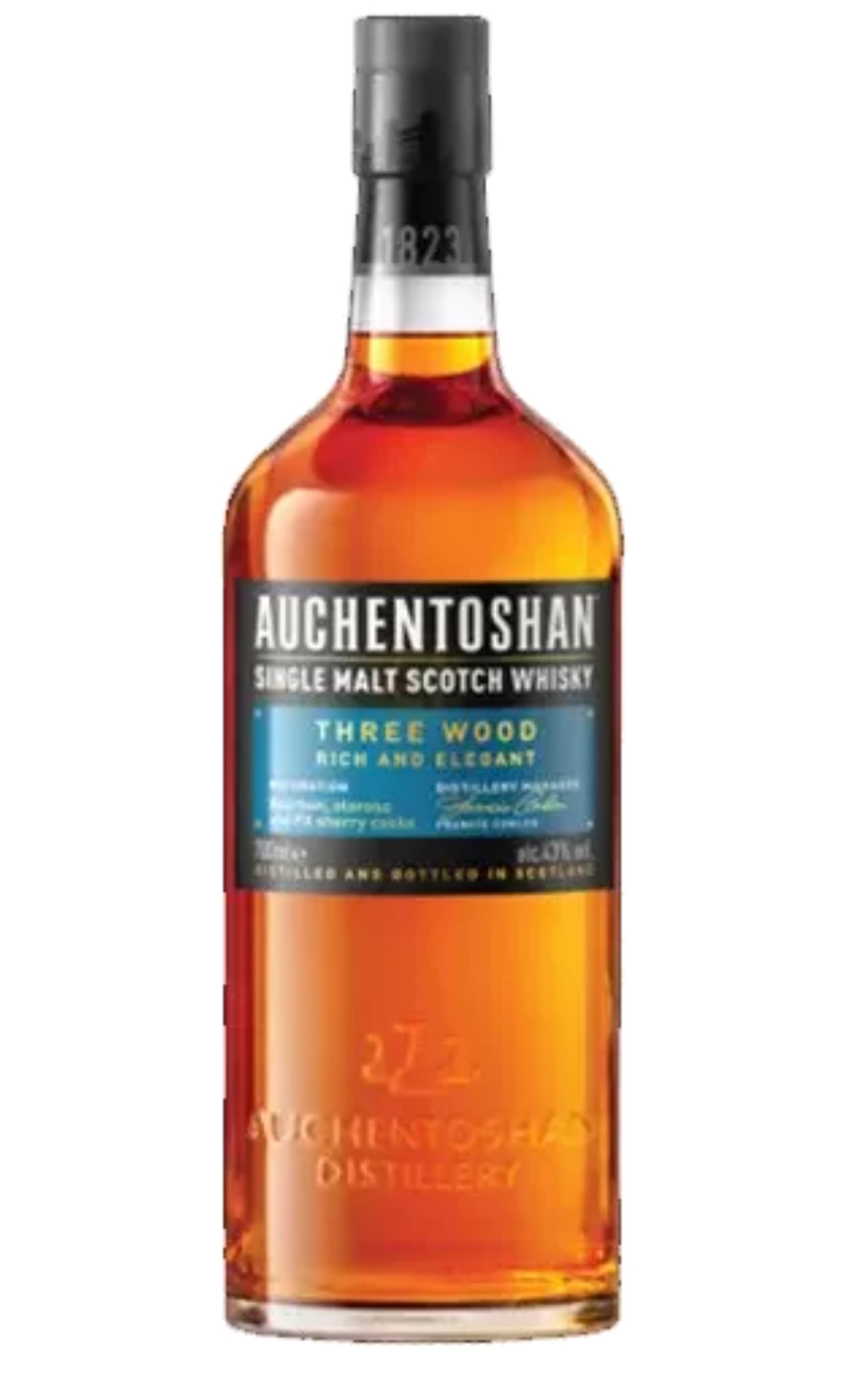 This award-winning Auchentoshan Single Malt Scotch Whisky has been matured in three different cask types. From American Bourbon to Spanish Oloroso Sherry – and then, finally, Pedro Ximenez Sherry casks – this a rich, complex whisky with toffee and sherry flavors. Three Wood makes a cracking Auchentoshan & Ale, a mean Old Fashioned and a damn fine dram in its own right. Consider an Auchentoshan whisky that’s Distilled Differently and choose our Three Wood Scotch.