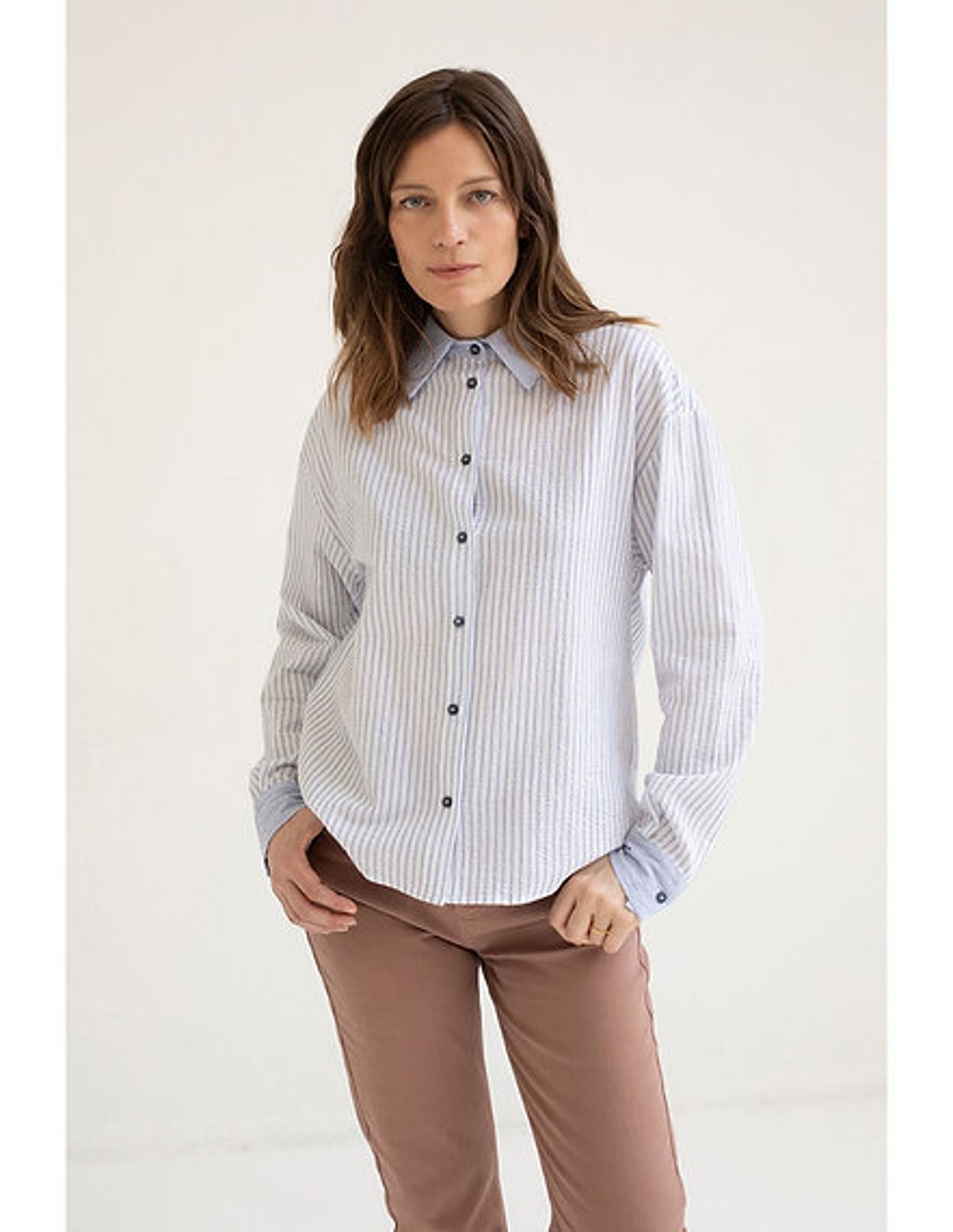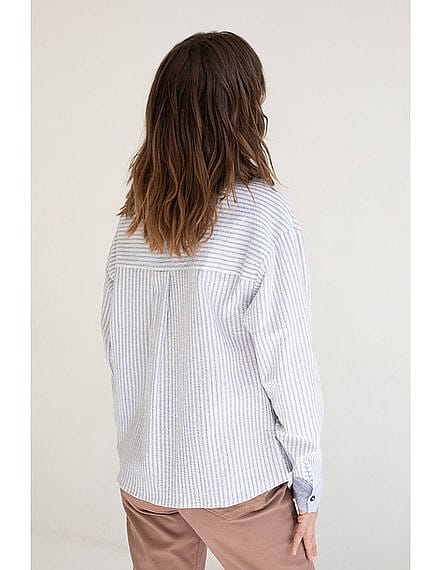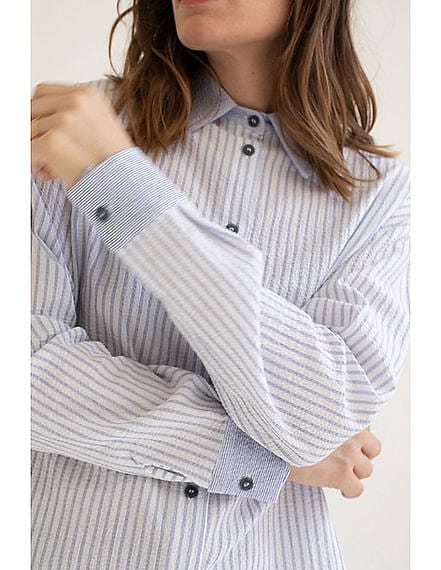 A classic long-sleeved shirt with a combination of seersucker fabrics on the body, collar and cuffs. Blue/White 99% cotton 1% elastane Made in Spain