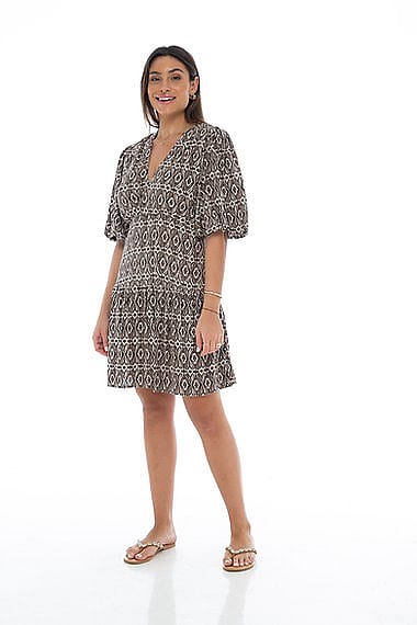 Ikat short dress Chocolate 100% rayon Made in Indonesia