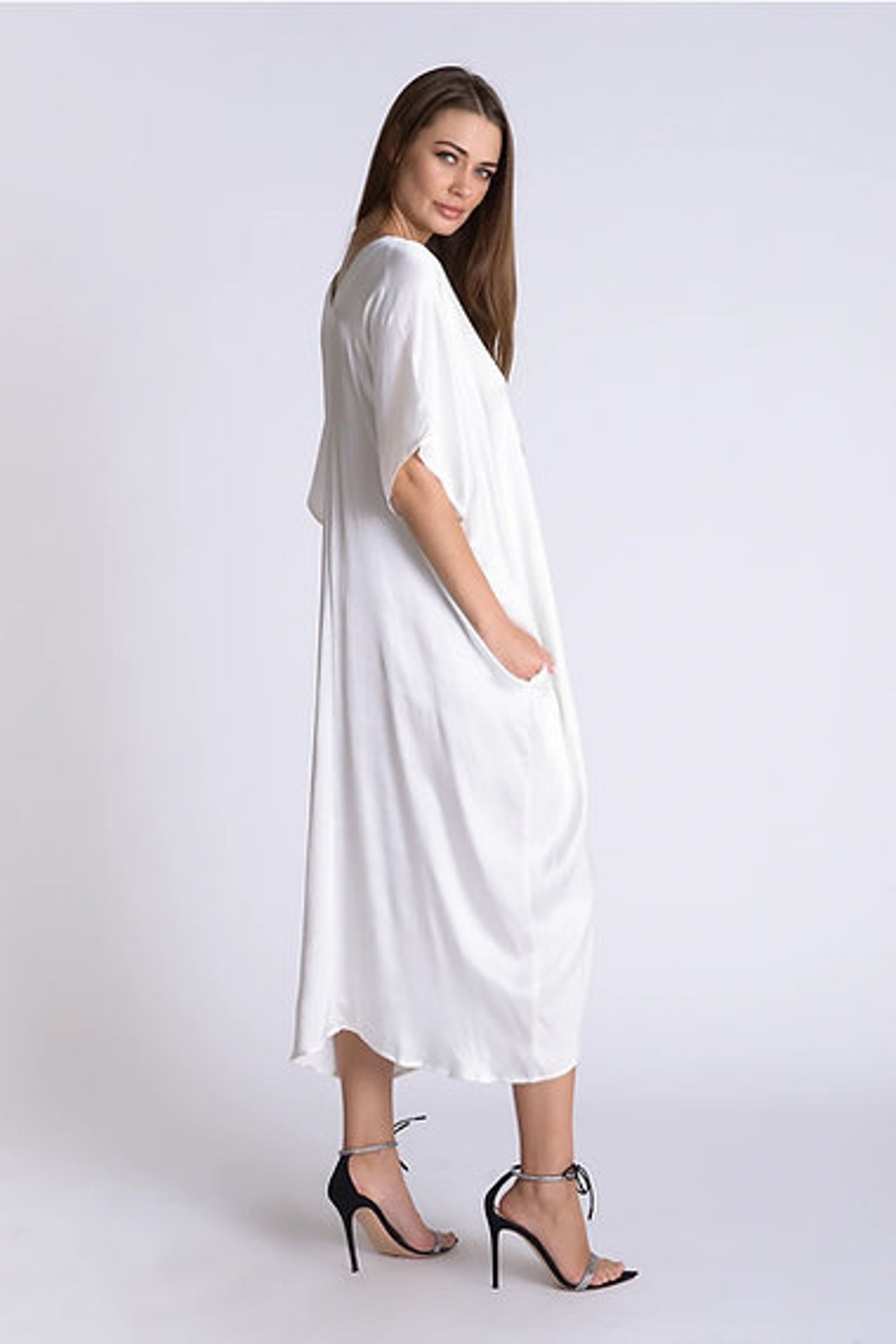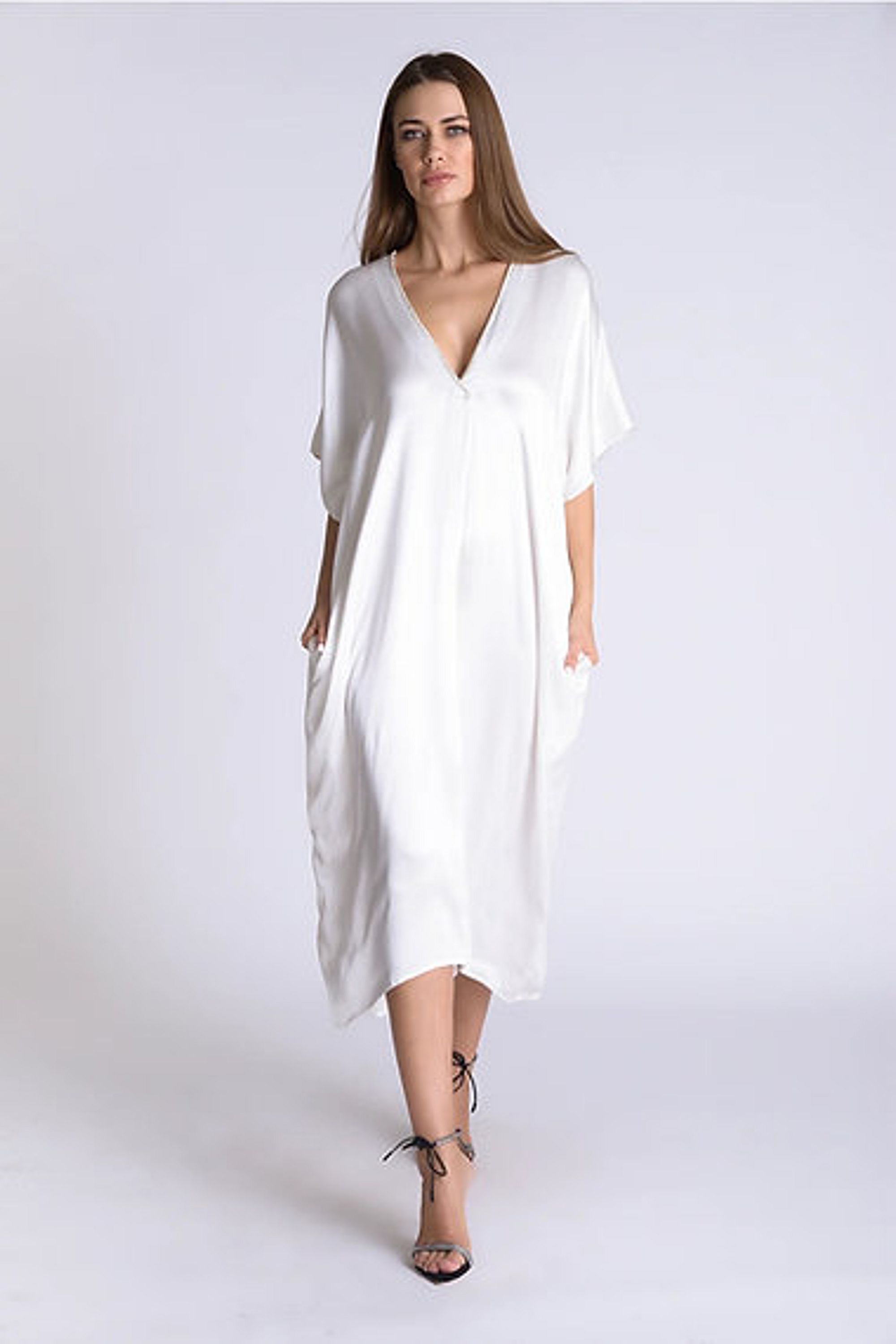 One-size satin maxi with rhinestone neckline. Perfect gift for the bride to be. White 100% polyester Imported