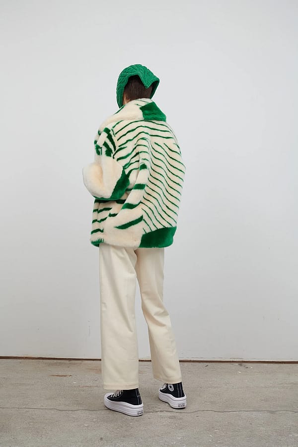 JKT Green & Cream Faux Fur Jacket
