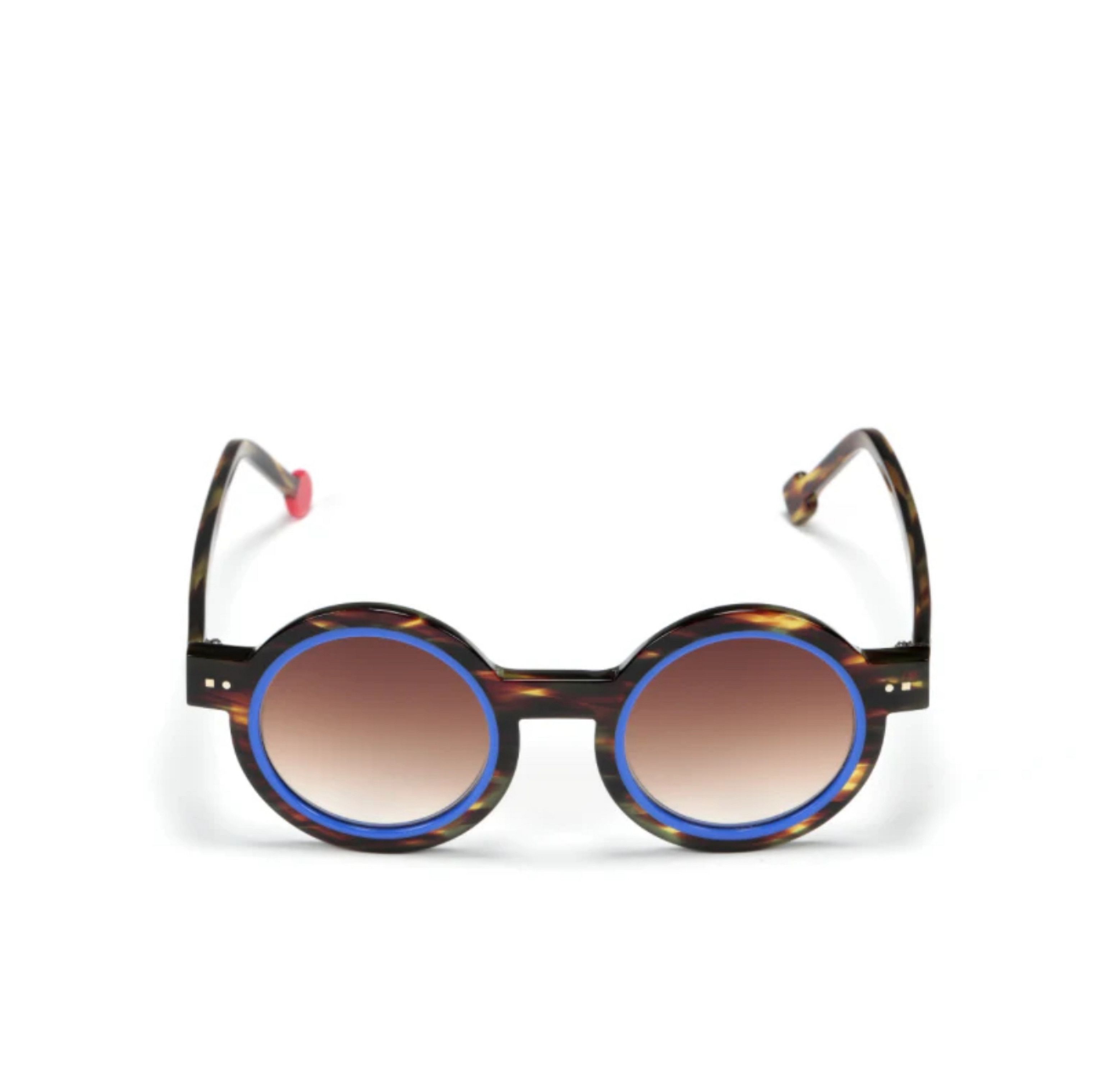 Sabine Be offers another wildly bold frame with vibrant colors and an incredibly unique design. Size : 45 / 21 Temple : 145mm Material : Acetate Lens : Gradient Tint / 100% UV Protection