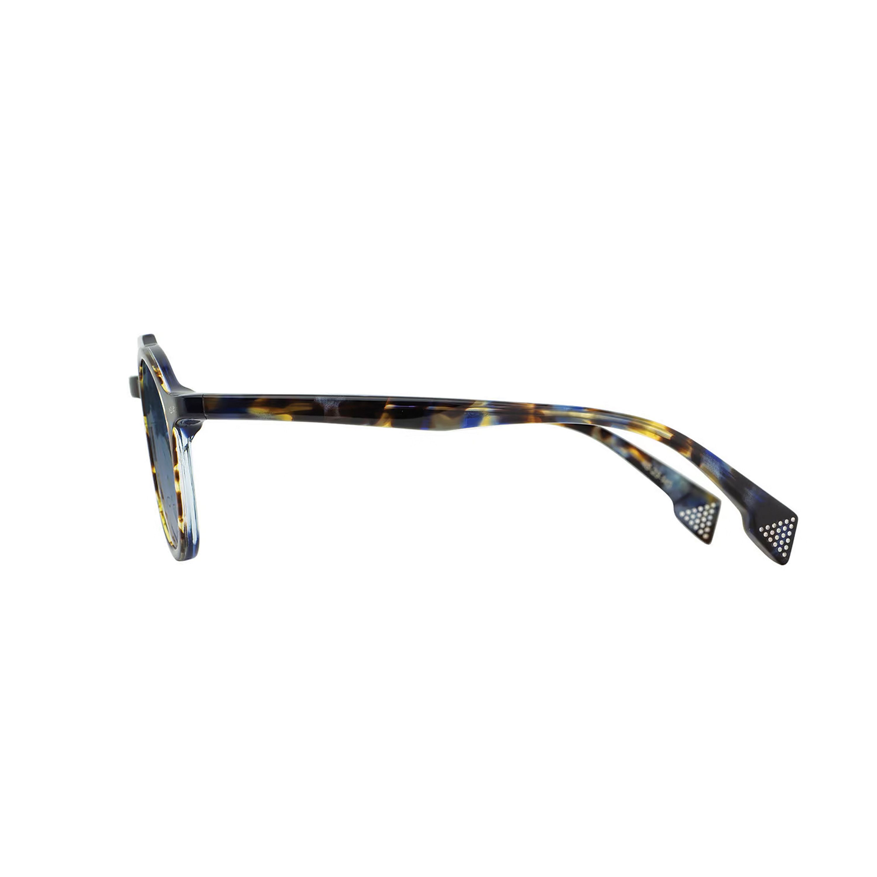 This style defies being placed neatly in one box, both vintage-inspired and modern-leaning. It reveals its layers along its top bar, expertly shaved to show the depth of color below the surface.