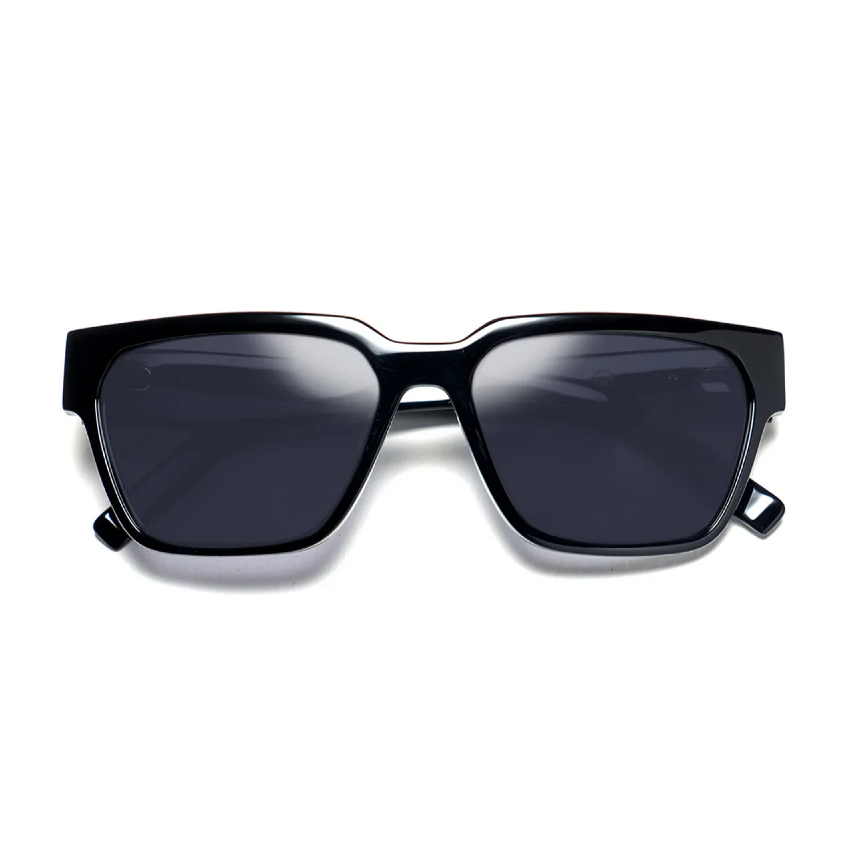 A classic lens shape with a slight wrap, this high polished black sunglass features premium Japanese Acetate and a ZEISS lens. The gold plated metal logo is specifically modeled on the Michael Keaton Batman era logo. Size: 55/17 Temple: 145