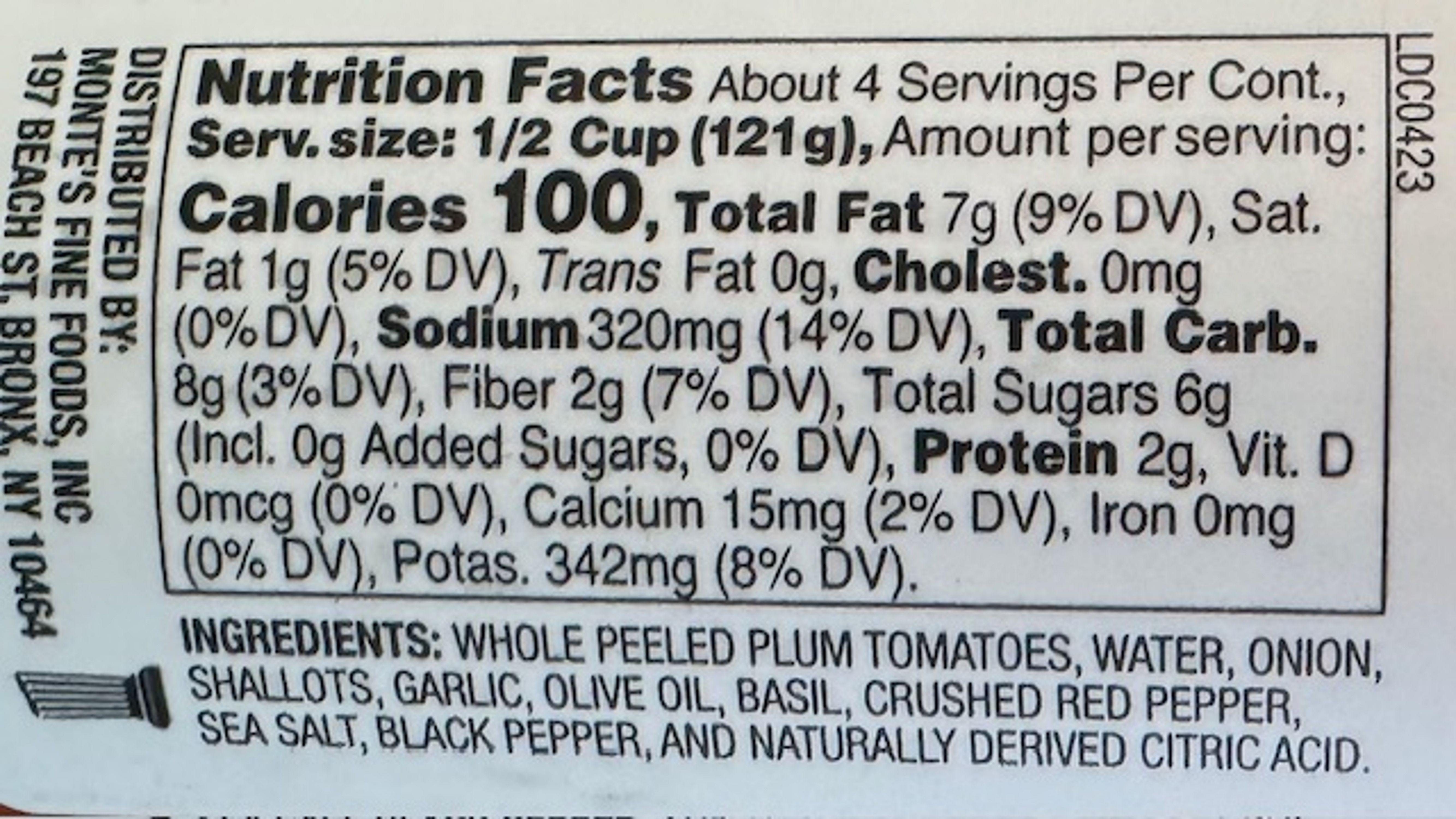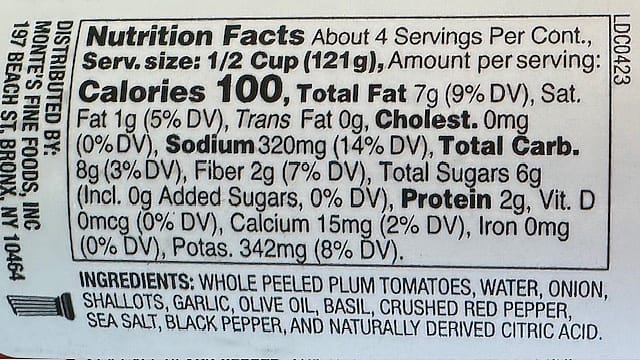 Ingredients: Whole Peeled Plum Tomatoes, Water, Onion, Shallots, Garlic, Olive Oil, Basil, Crushed Red Pepper, Sea Salt, Black Pepper, And Naturally Derived Citric Acid.