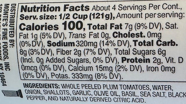 Ingredients: Whole Peeled Plum Tomatoes, Water, Onion, Shallots, Garlic, Olive Oil, Basil, Sea Salt, Black Pepper, And Naturally Derived Citric Acid.