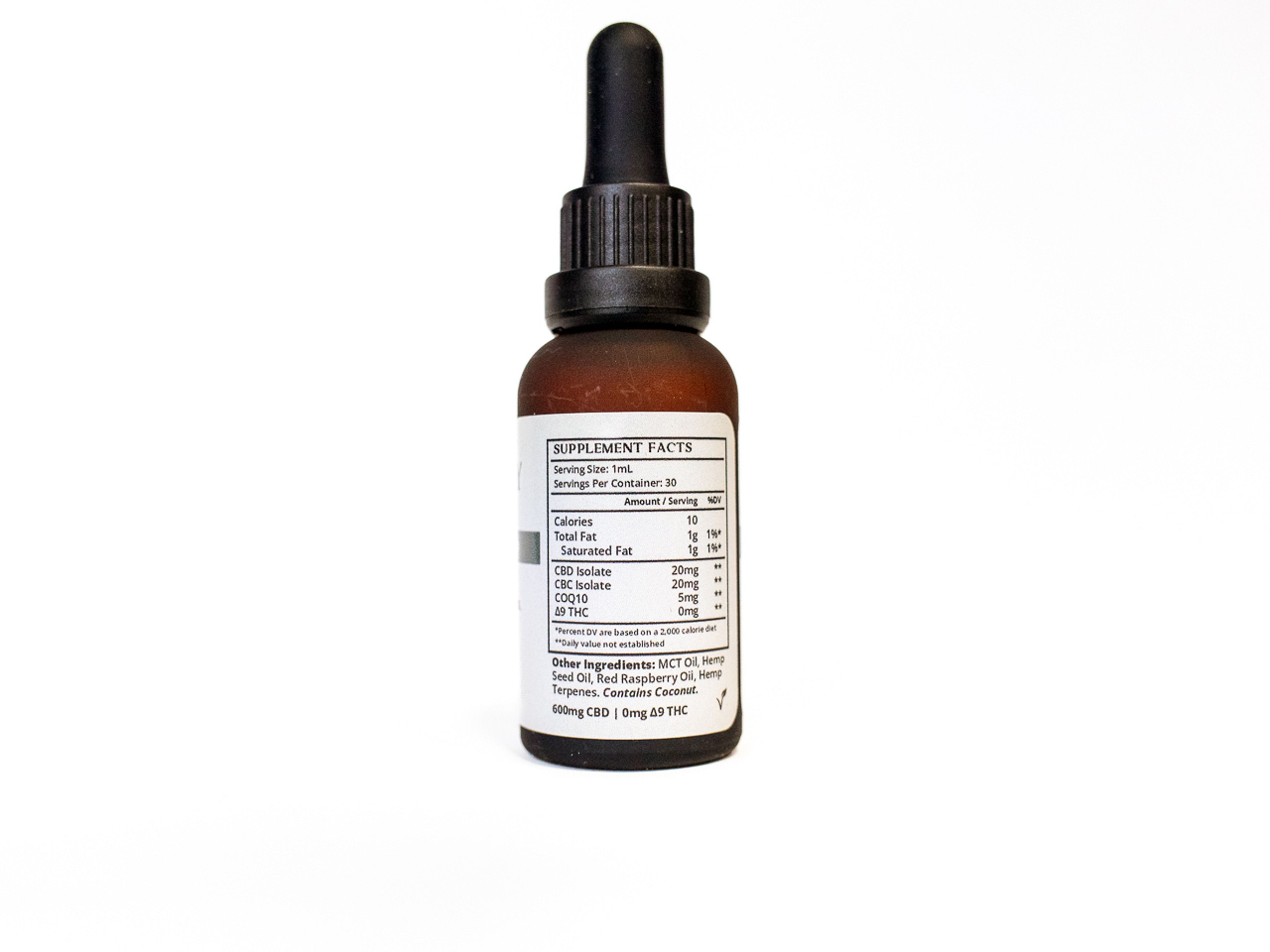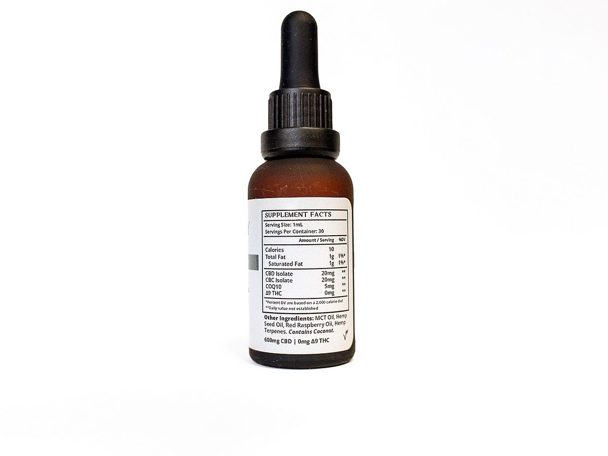 Ingredients: MCT Oil, Hemp Seed Oil, CBD Isolate, CBC Isolate, Coenzyme Q10, Red Raspberry Oil, Hemp Terpenes.