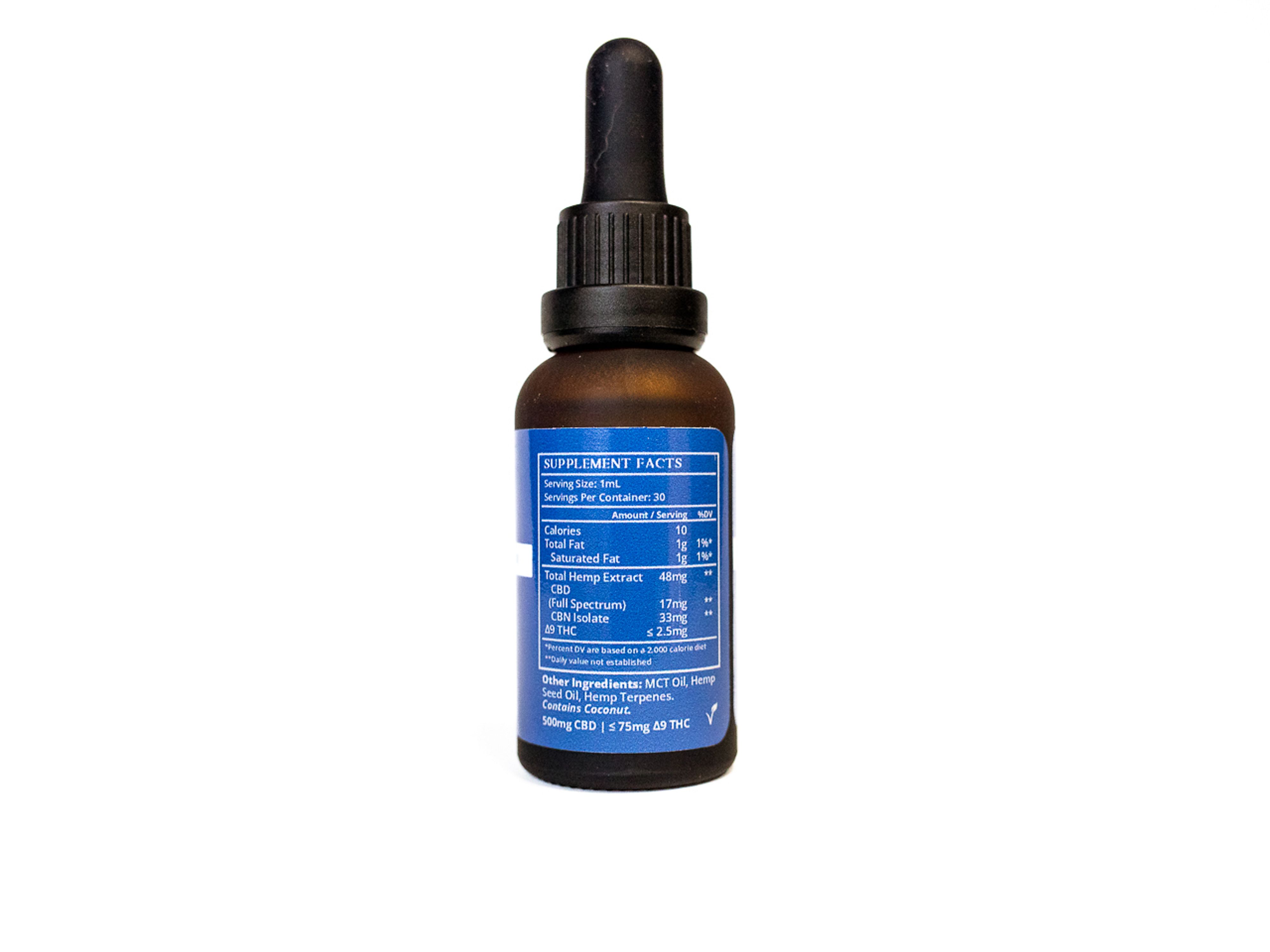 Ingredients: MCT Oil, Hemp Seed Oil, Full Spectrum Distillate, CBN Isolate, Hemp Terpenes. Contains Coconut