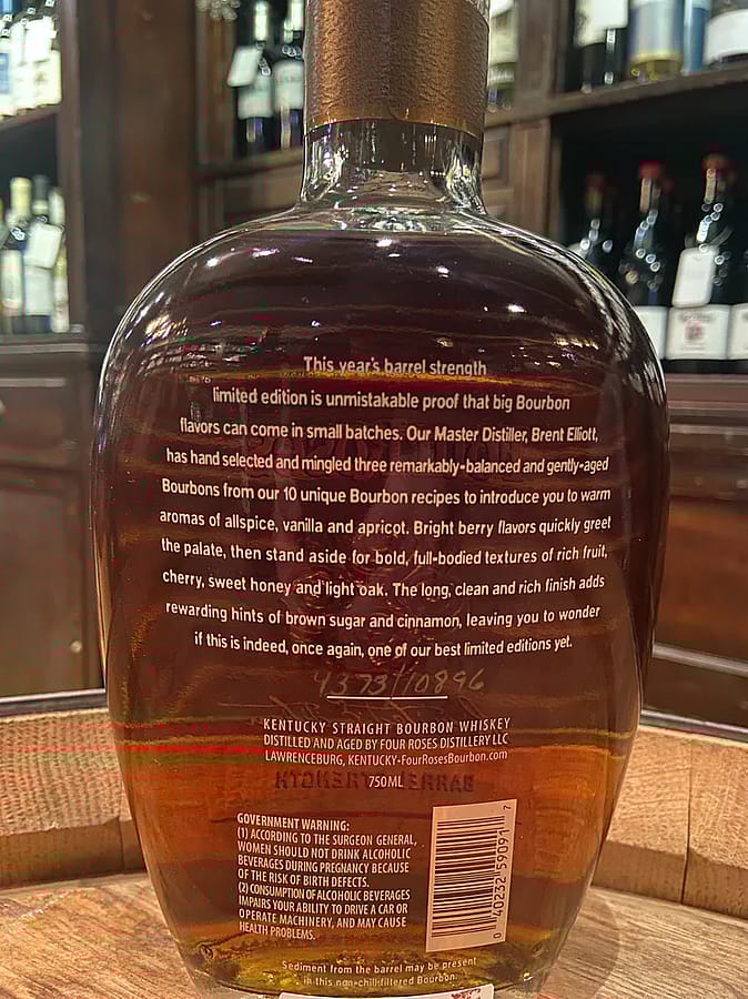 108 proof 4RLESMB 750ml from 2017 (bottle 4373 of 10896) 40% OESV 12 year 40% OESK 13 year 20% OESK 15 year Caramel, spice, oak, red fruit