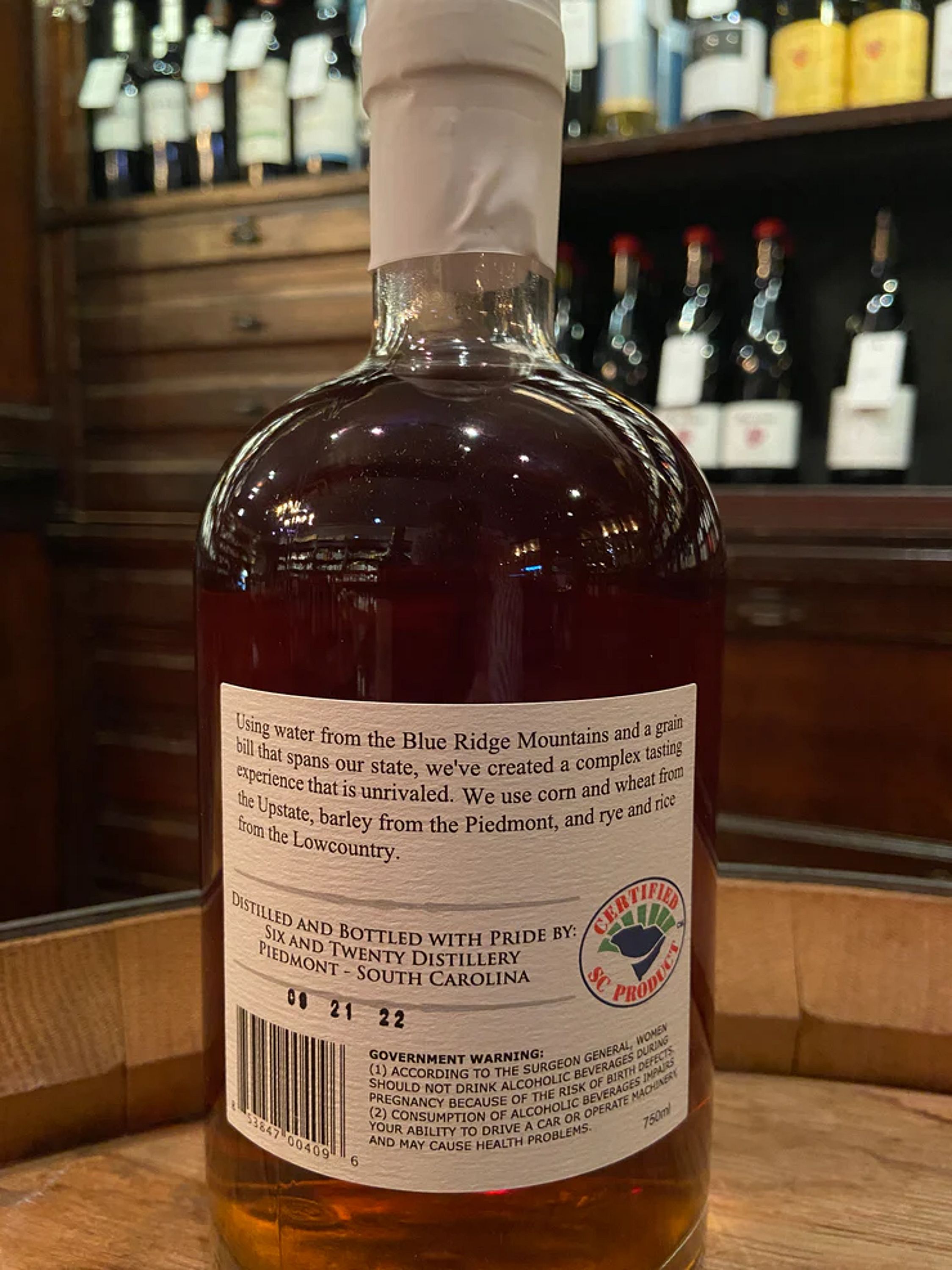 Grain Bill: Corn, Soft Red Winter Wheat, Barley, Black Seashore Rye, and Carolina Gold Rice. Aged 3 years in brand new American Oak Barrels Smoke, spice and sugar. Cinnamon, vanilla, and black pepper.