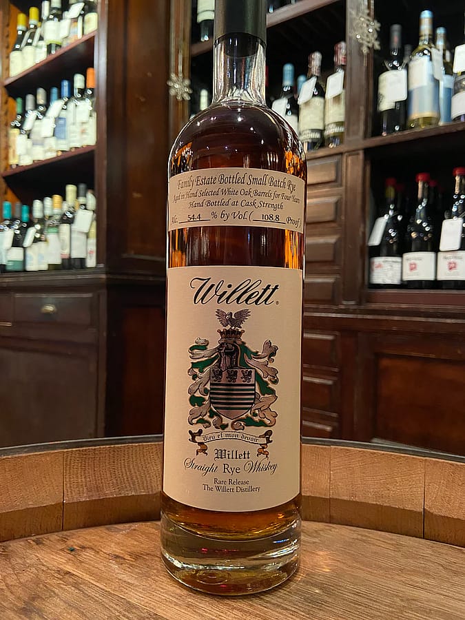 Family Estate Bottled Small Batch Rye from The Willett Distillery Aged in hand selected white oak barrels for 4 years. Hand bottled at cask strength Cherries, figs, rye spice, herbs, caramel