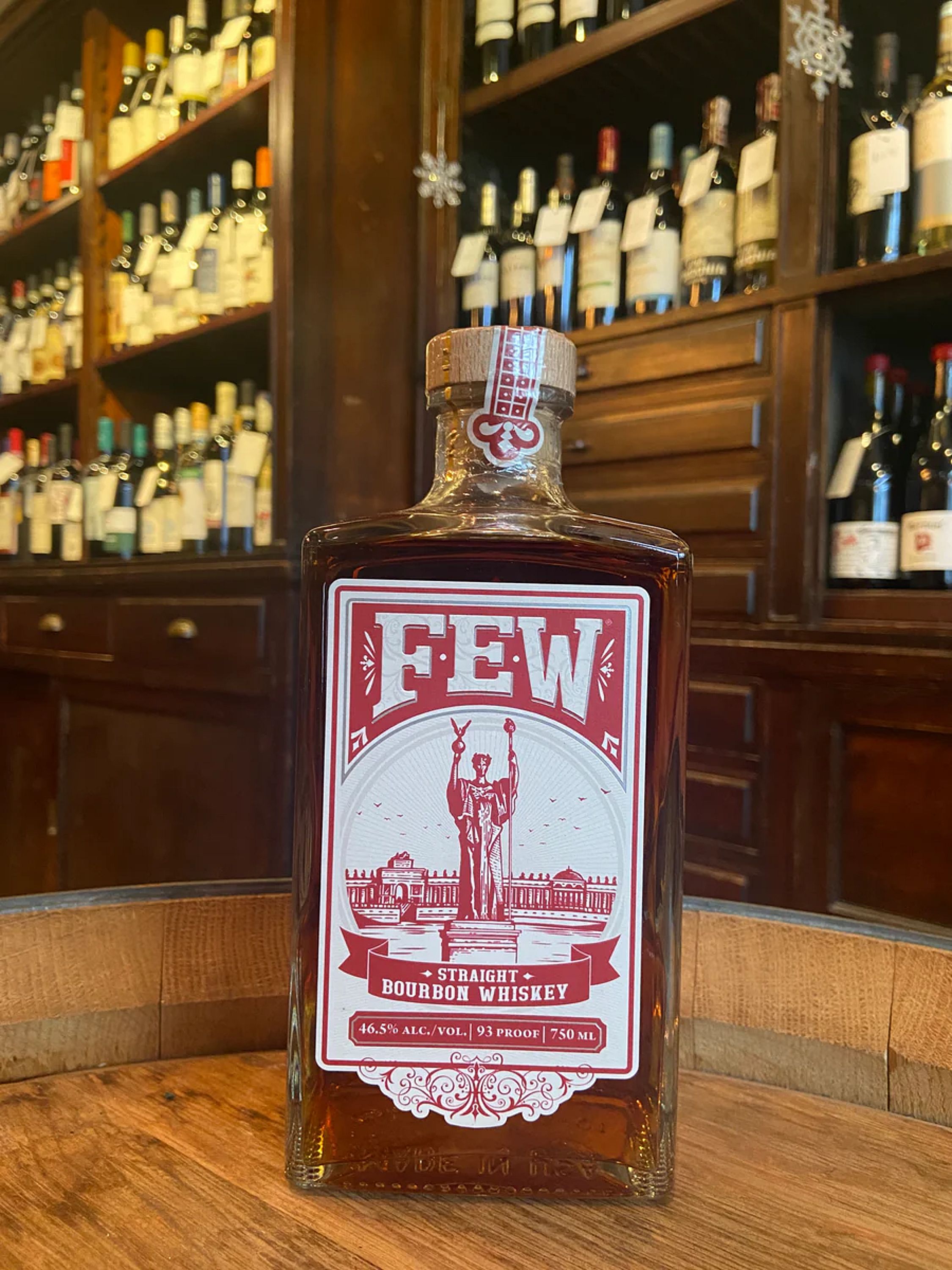 FEW Straight Bourbon Whiskey, distilled through timeless liquor-making techniques, utilizes a three-grain recipe that infuses generations of southern tradition with the spiciness of northern rye and a touch of malt for smoothness. FEW is hand-crafted through a small-batch process in charred oak barrels to age its bourbon whiskey. A blend of 70% corn, 20% rye, and 10% malt. Fermented with a special, peppery yeast for a bold, Chicago-style Bourbon Whiskey.