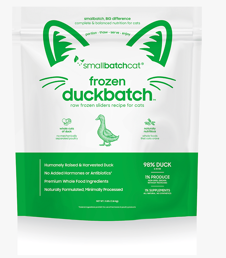 98% humanely raised and harvested duck, 1% organic produce, 1% natural supplements