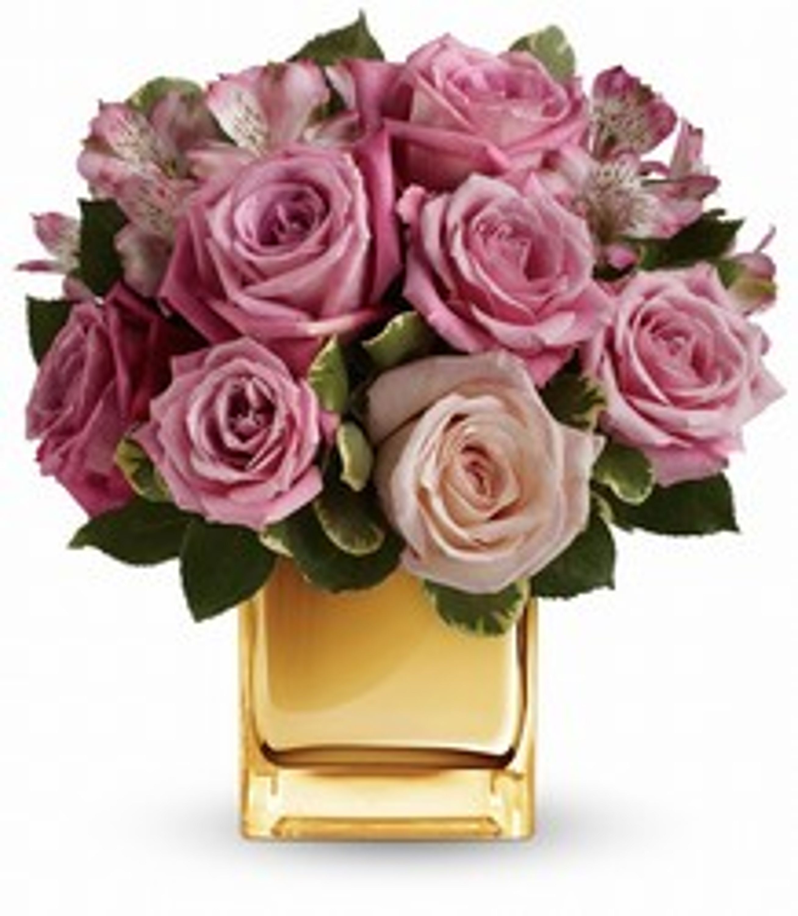Ravishing roses and a radiant cube vase combine to stunning effect in this amazing arrangement featuring soft, romantic shades of pink and lavender. It's sure to make her heart radiate with love and affection! SMALL- 12 ROSES MEDIUM- 18 ROSES LARGE- 24 ROSES XTRA LARGE- 36 ROSES