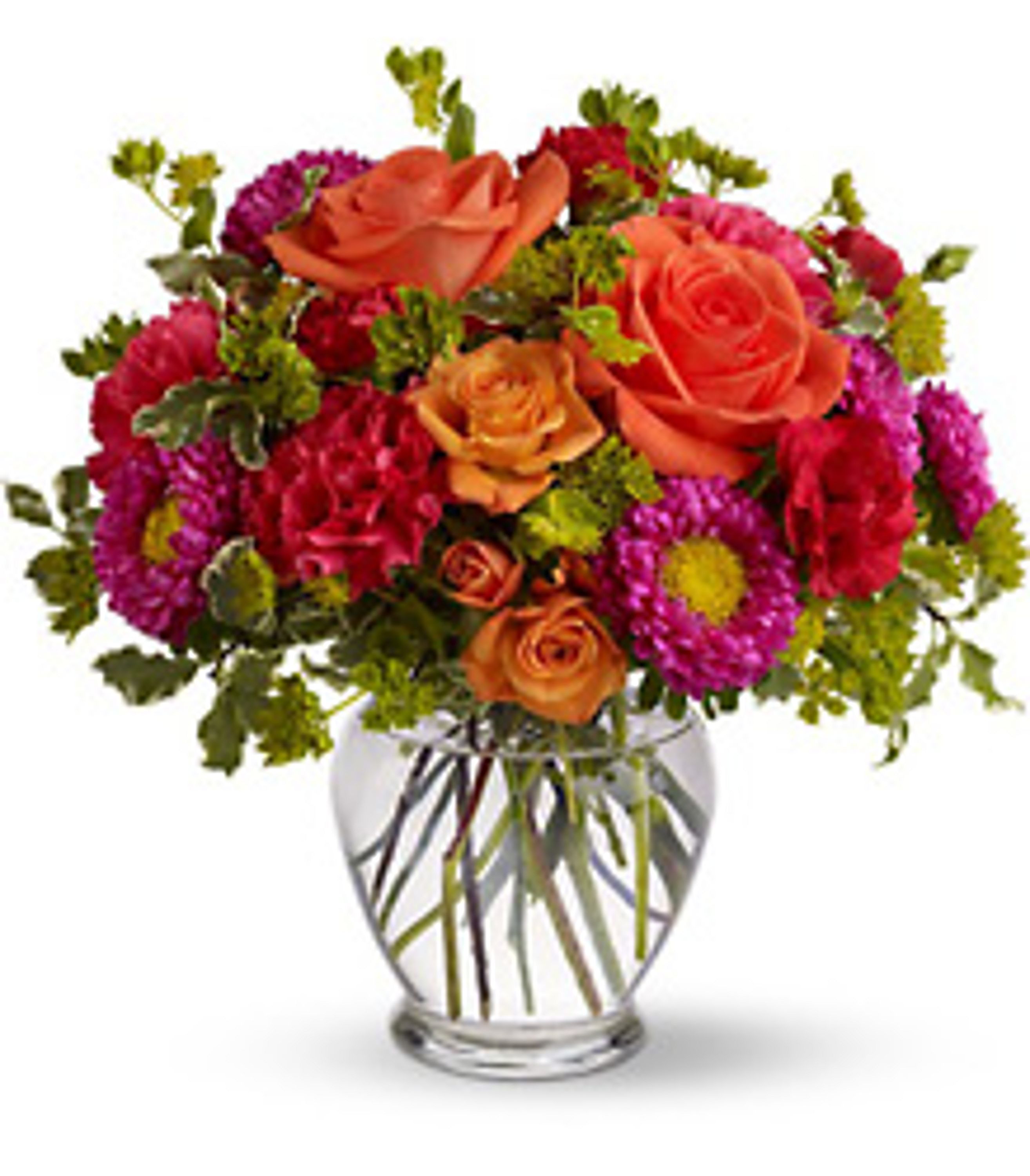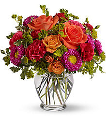 How sweet it will be when this vibrant hot pink and orange arrangement arrives at someone's door. Very vibrant. Very vivacious. And very, very pretty. S- 12 Flowers M- 18 Flowers L- 24 Flowers