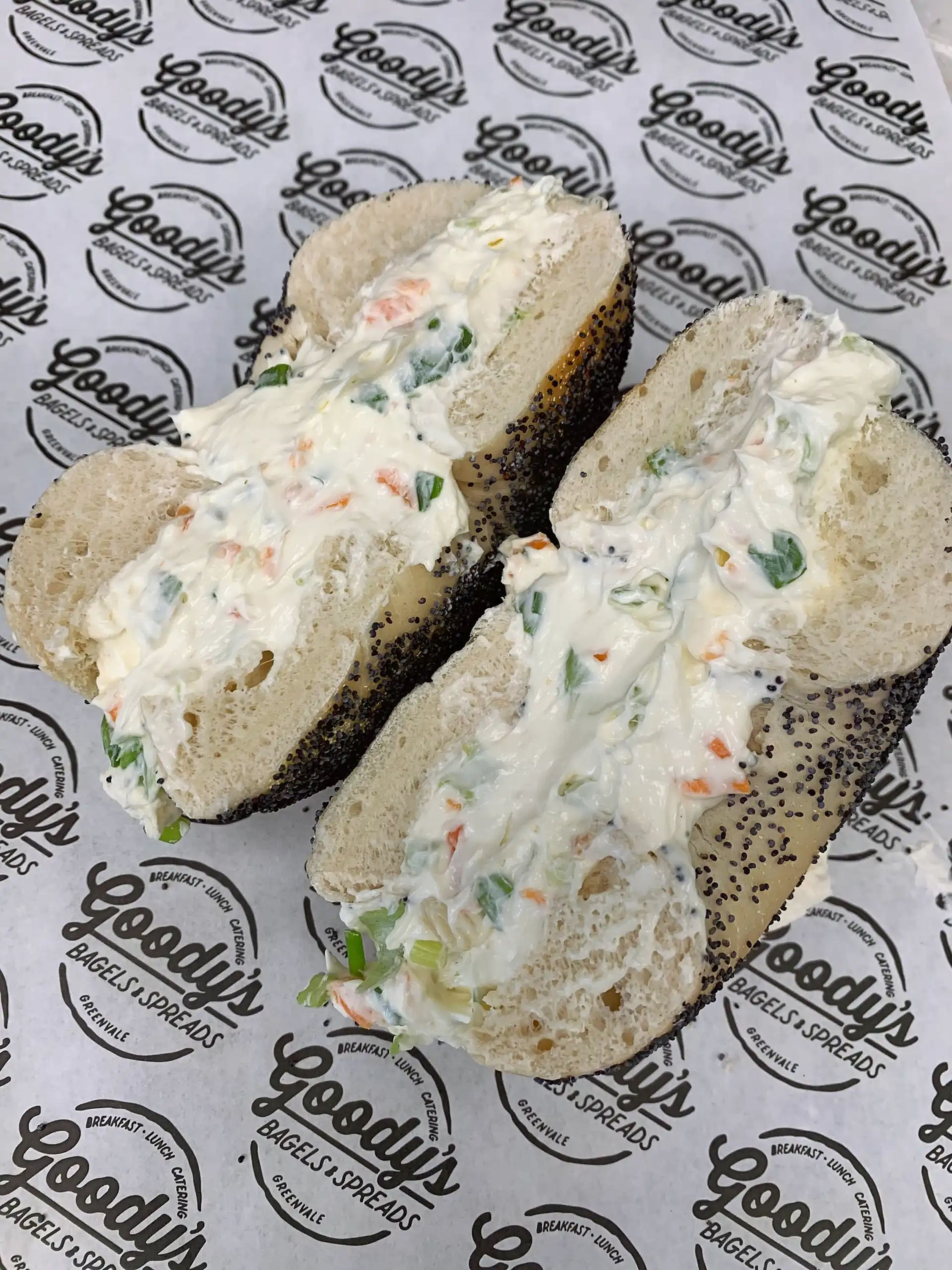 A rich and creamy blend of whipped cream cheese mixed with finely chopped vegetables such as carrots, scallions, and bell peppers. Perfectly balanced for flavor and texture, making it an ideal topping for bagels, crackers, or sandwiches.