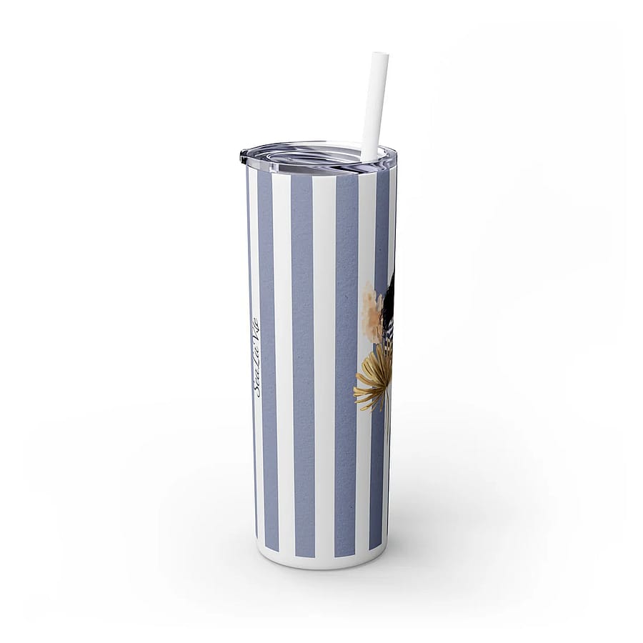 Introducing our stylish Skinny Tumbler with Straw, the perfect companion for your beverages on the go! With a sleek, tapered design, this versatile tumbler not only keeps your drinks at the ideal temperature for hours but also adds a vibrant splash of color to your day. Whether you're enjoying a refreshing iced tea at a beach picnic or sipping hot coffee at your home office, this tumbler is here to elevate your beverage experience. Ideal for ocean lovers and outdoor enthusiasts, it makes a thoughtful gift for friends and family. Use it for everyday hydration, during celebrations, or as a unique holiday gift. Perfect for summer gatherings, beach trips, and cozy nights in, this tumbler is an essential for anyone seeking both style and functionality! Product features - Double wall insulation keeps drinks hot for up to 12 hours and cold for up to 24 hours - Includes a clear plastic lid with a matching color straw for added convenience - Vibrant and crisp colors achieved with advanced printing techniques - Made from durable stainless steel and BPA-free plastic - Available in a matte or glossy powder-coated finish; hand wash only Care instructions - Hand wash only *Please leave name in notes for personalization- if not the item will be printed as is.