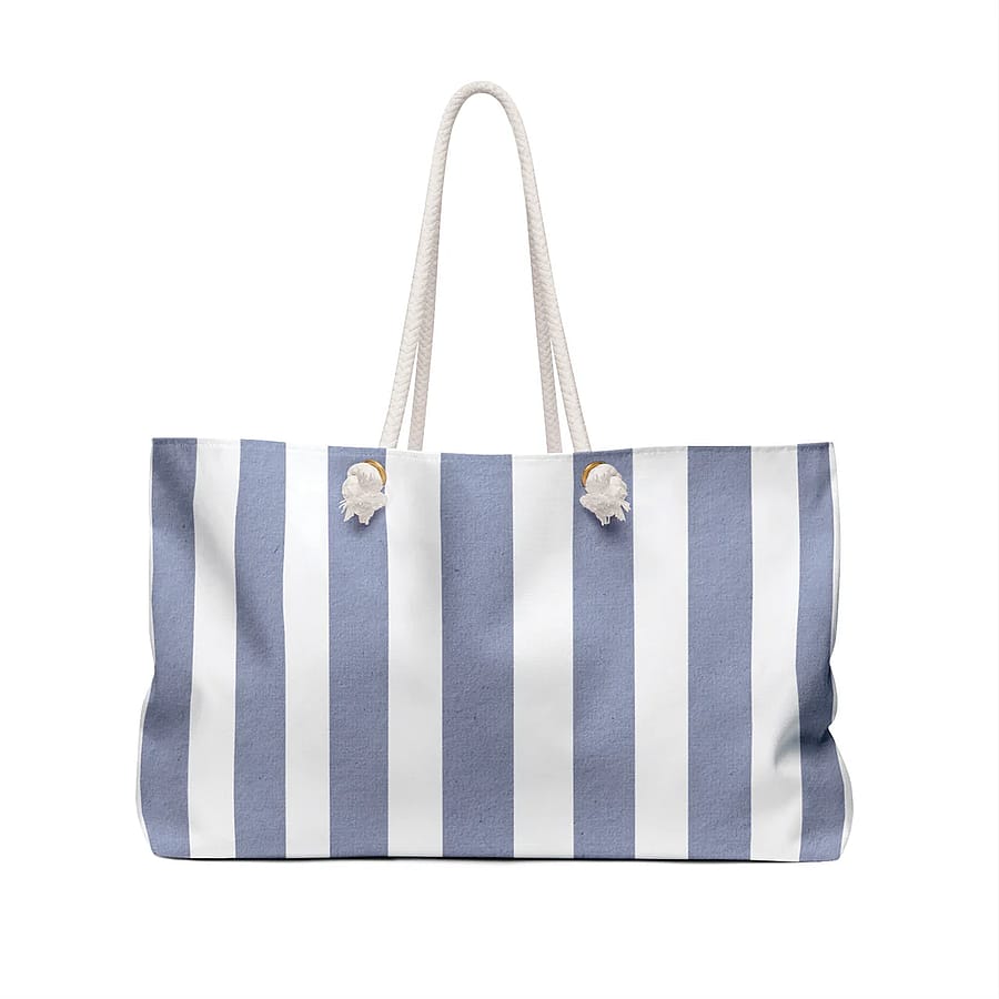 Our oversized Weekender Tote is perfect for your weekend at the beach or in town. The wide-mouthed, durable bag holds a generous amount of personal items and is easily held by its thick rope handles.