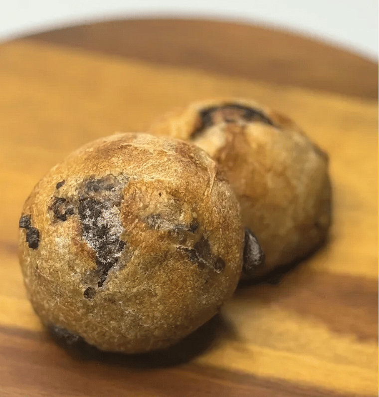 Made with regionally sourced, Stone Milled Organic Wheat (Hard Red Spring Wheat), filtered water, salt and a natural leavening agent otherwise known as a levain or starter, organic kalamata olives, local organic egg wash on top. *1/2 Dozen*