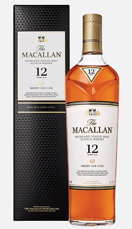 The Macallan Sherry Oak 12 Years Old is an iconic single malt Scotch whisky born of The Macallan’s unrivalled commitment to the mastery of wood and spirit. Twelve years maturation in Oloroso Sherry-seasoned oak casks delivers a beautifully aged and exquisitely complex single malt, with notes of dried fruits and rich vanilla complemented by hints of warm oak spice. 750 mL