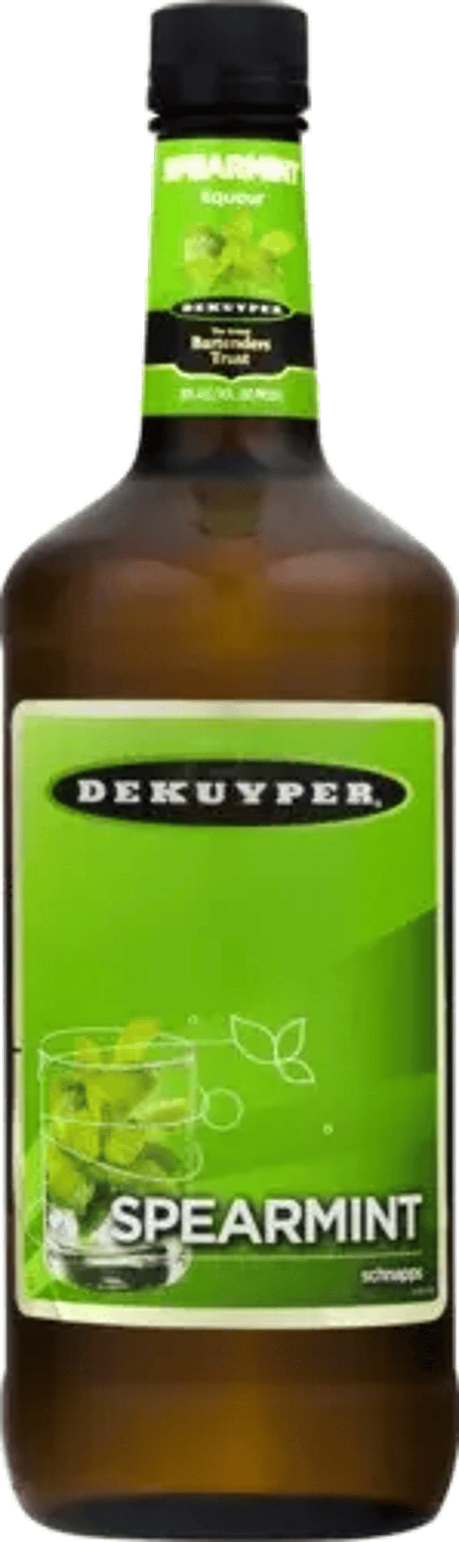 Energize your cocktails with DeKuyper Spearmint Schnapps Liqueur. Made with real spearmint extract, this liqueur is cool to the core. Freshen up iced tea or your favorite cocktail for a pleasantly chilling experience, perfect for a hot summer day. Shake it up with ice and Pucker Strawberry Schnapps for a refreshing Minted Berry, perfect for sipping poolside in the shade. 1 L