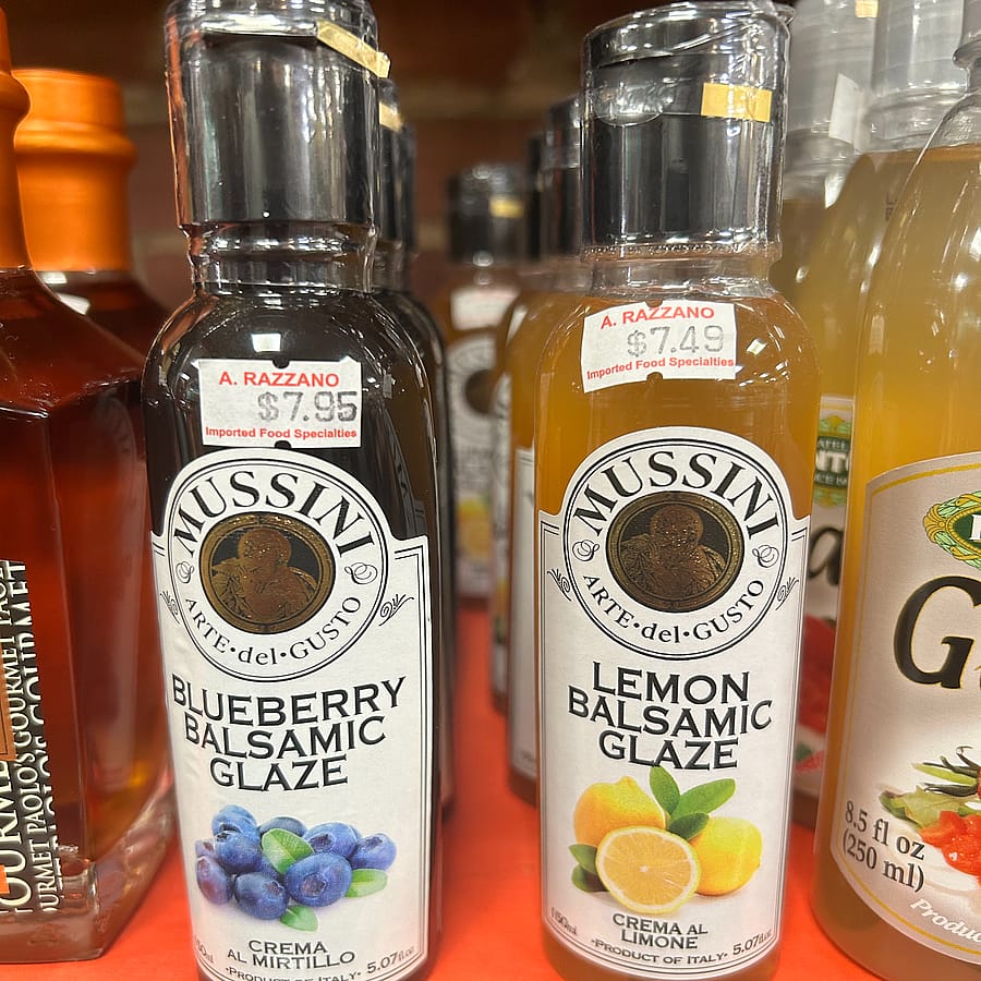 Mussini Balsamic Glaze- Blueberry and Lemon Flavors. Elevate your dishes with the rich and vibrant flavors of gourmet glazes blend with natural flavor infusion for a unique twist on a classic condiment. Thick, velvety, and easy to pour.