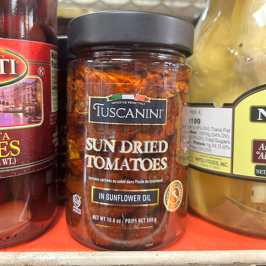 Premium sun-dried tomatoes soaked in olive oil offering a rich, chewy and bursting with sweet-tart flavor. Ready to use in one convenient jar, enhancing salads, pastas, pizzas, and more.