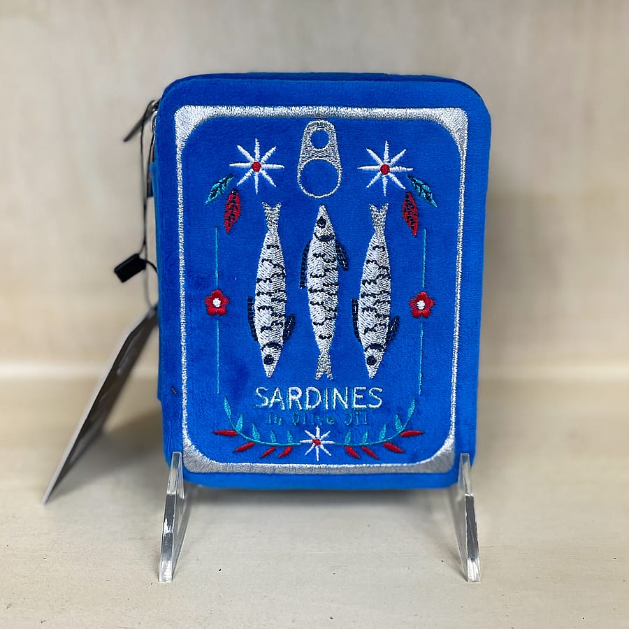 -Features: Rich velvet texture with embroidered sardine tin design, compact and lightweight.