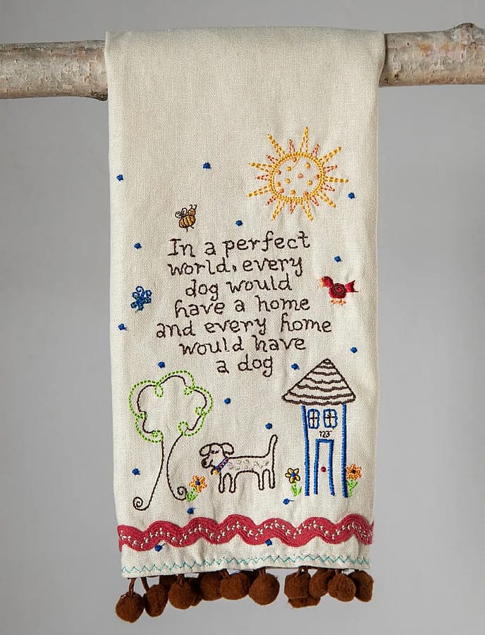 Hand embroidered Kitchen towel with quotes about friendship and pets. A great gift for dog lovers, this hand towel would look cute in any bathroom or kitchen!