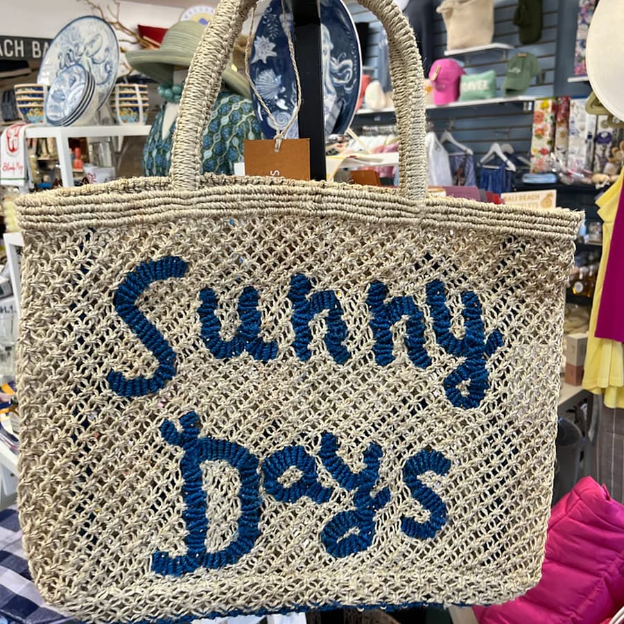 Brighten your day with the eco-chic Jute Sunny Days Tote Bag, featuring a cheerful Blue text, made from sturdy natural jute fiber. This tote is both stylish and sustainable making it perfect for an everyday use. With its breezy design and pop of playful color, this tote is a sunny essential you'll reach for again and again.