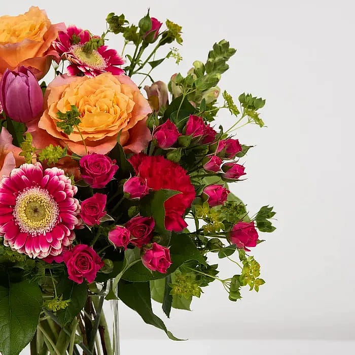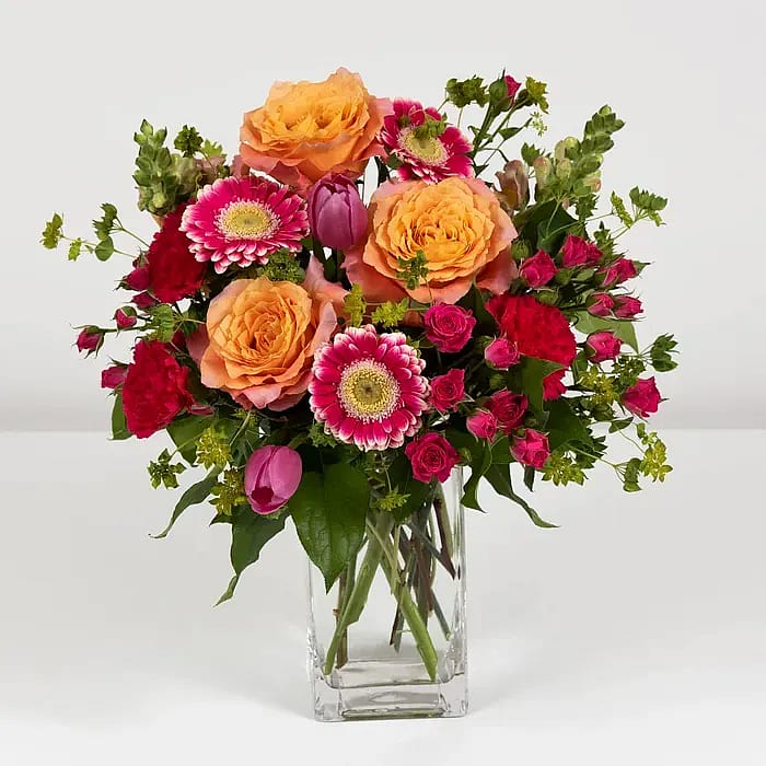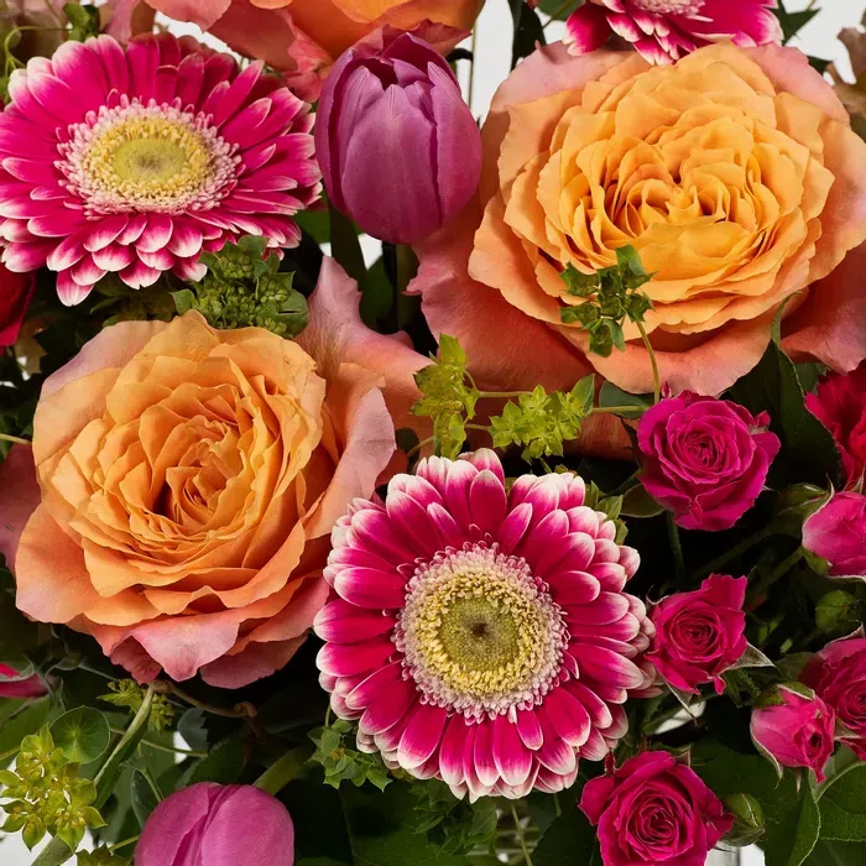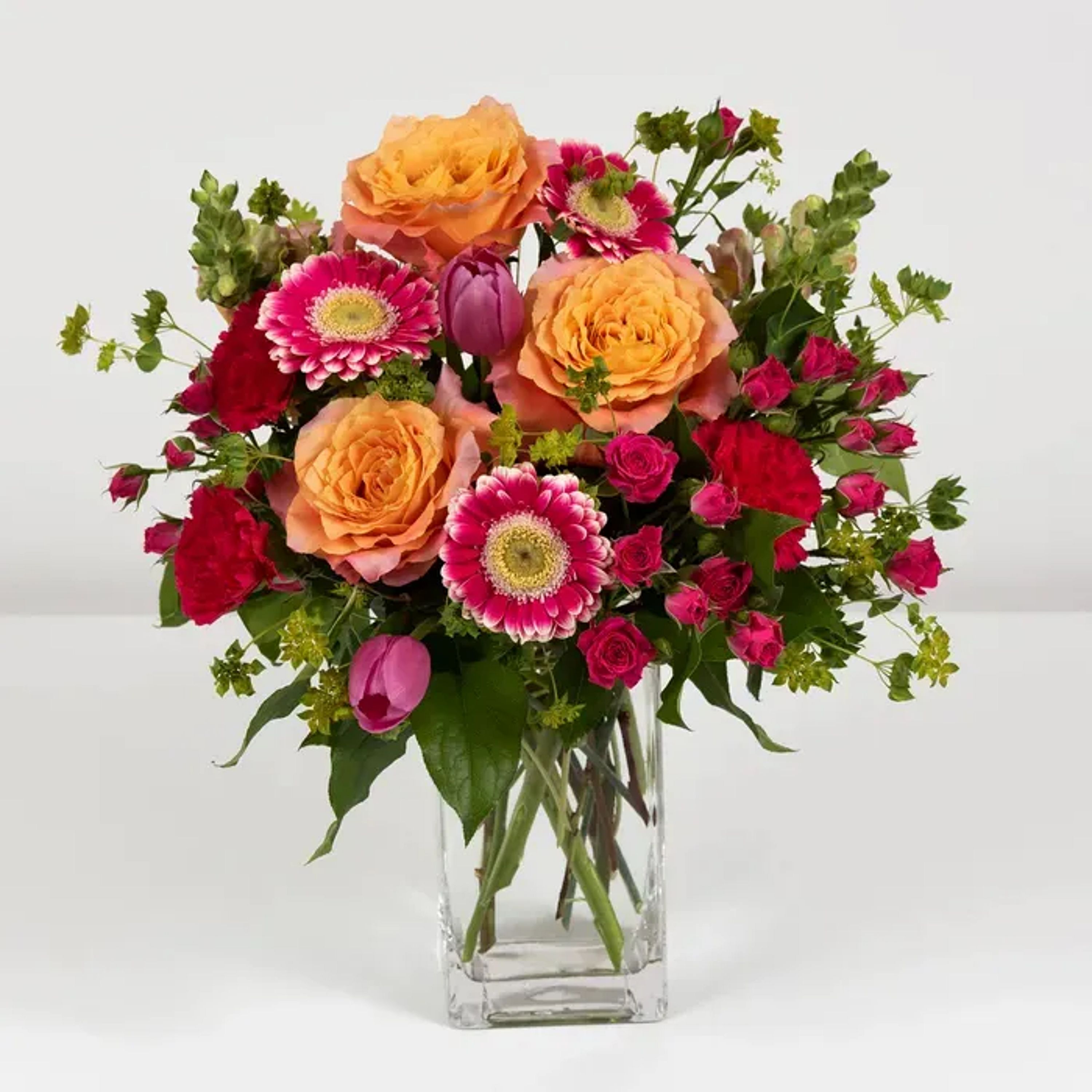 Send the free spirit in your life this colorful arrangement of mini gerberas, snapdragons, and roses.