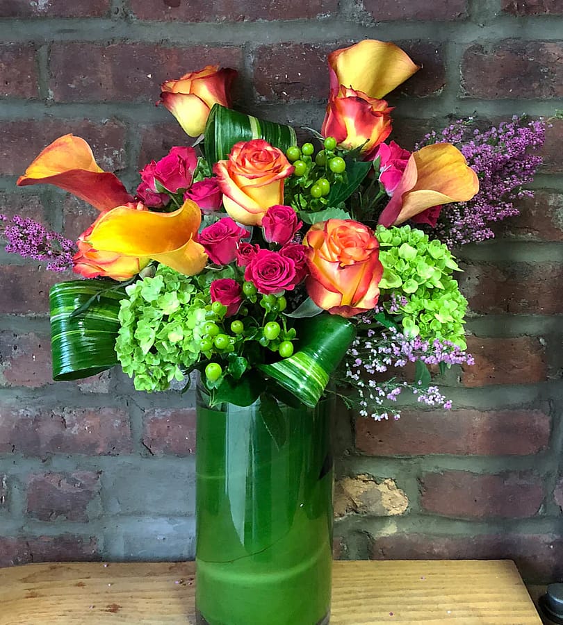 It feels like the first time. First Love is a fresh and vibrant way to express your love. Mango calla lilies, circus roses, hot pink spray roses and green hydrangea belong together. #vday26