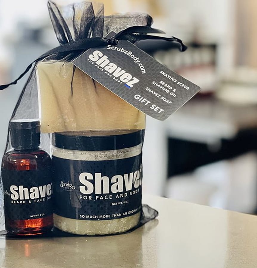 -Comes complete with the Shavez Shaving Scrub, Shavez Beard and Shaving Oil, and Shavez Soap.
