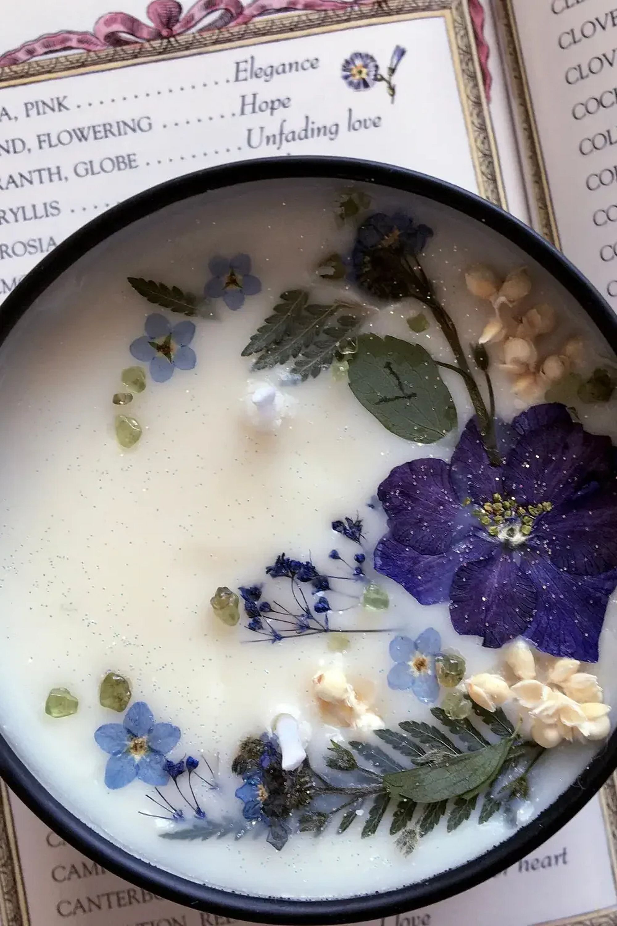 Hand poured and crafted, infused with violet absolute, lavender, violet and forget me not flowers.