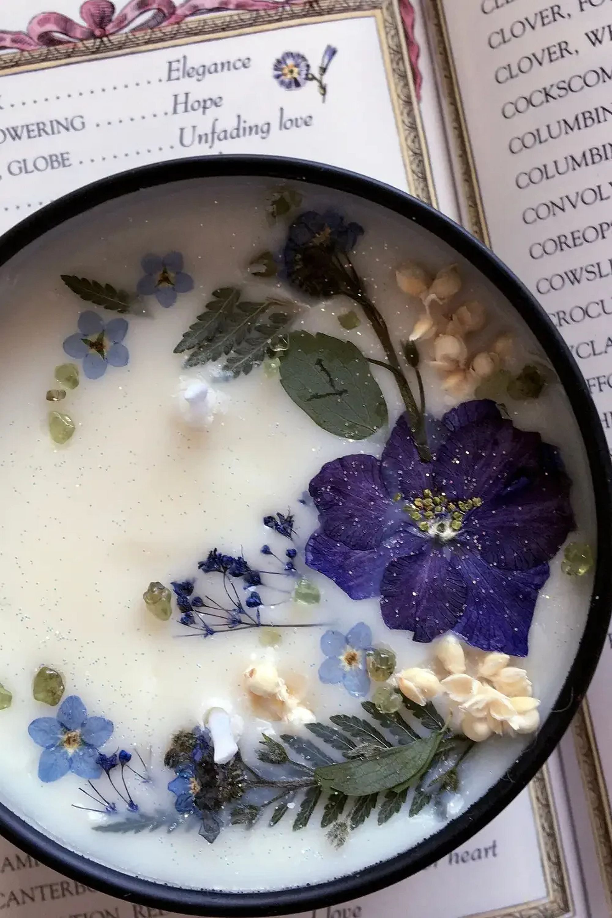 Hand poured and crafted, infused with violet absolute, lavender, violet and forget me not flowers.