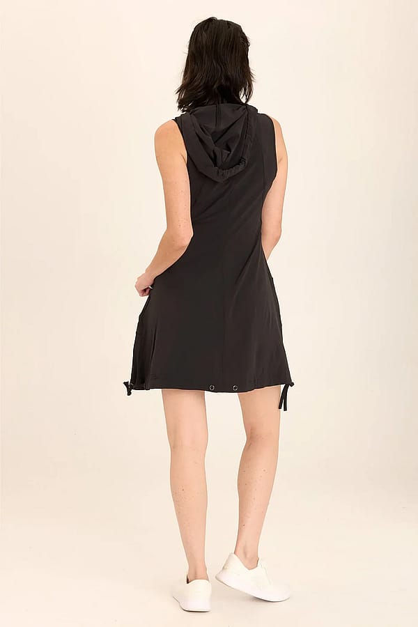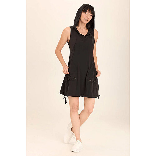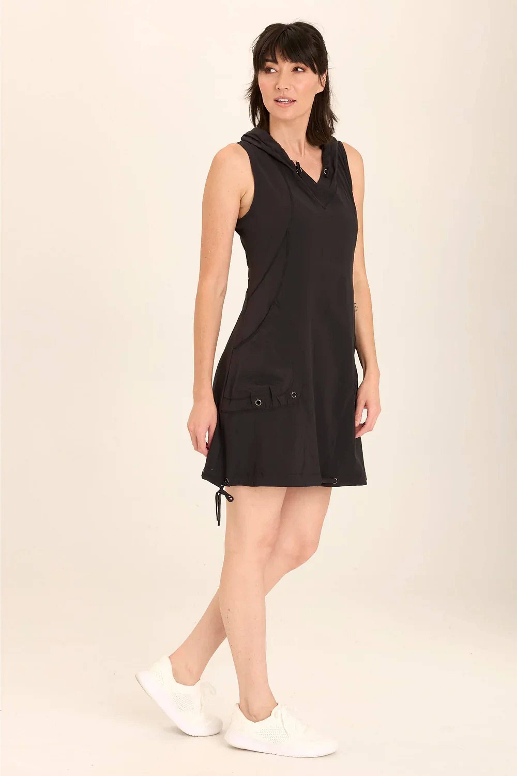 One of our best sellers just got a little better! Now in our ever popular Whisper fabric, this shortened sporty dress features a bubble drawstring hem, front pockets and a hood.