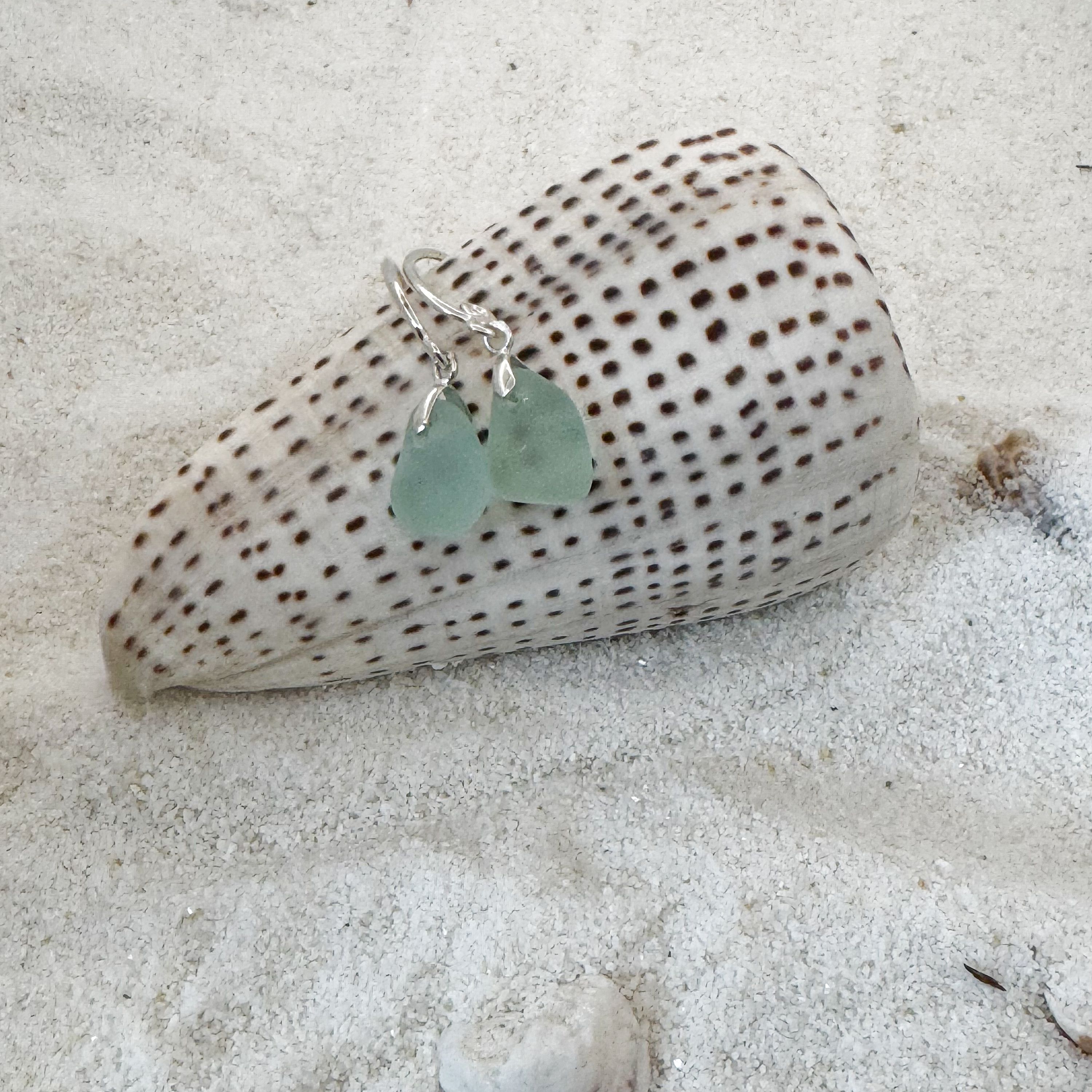 Bring a touch of the shore to your everyday look with these handcrafted earrings. Featuring soft green seaglass and silver-plated hooks, these earrings offer a light, breezy feel that’s perfect for ocean lovers.
