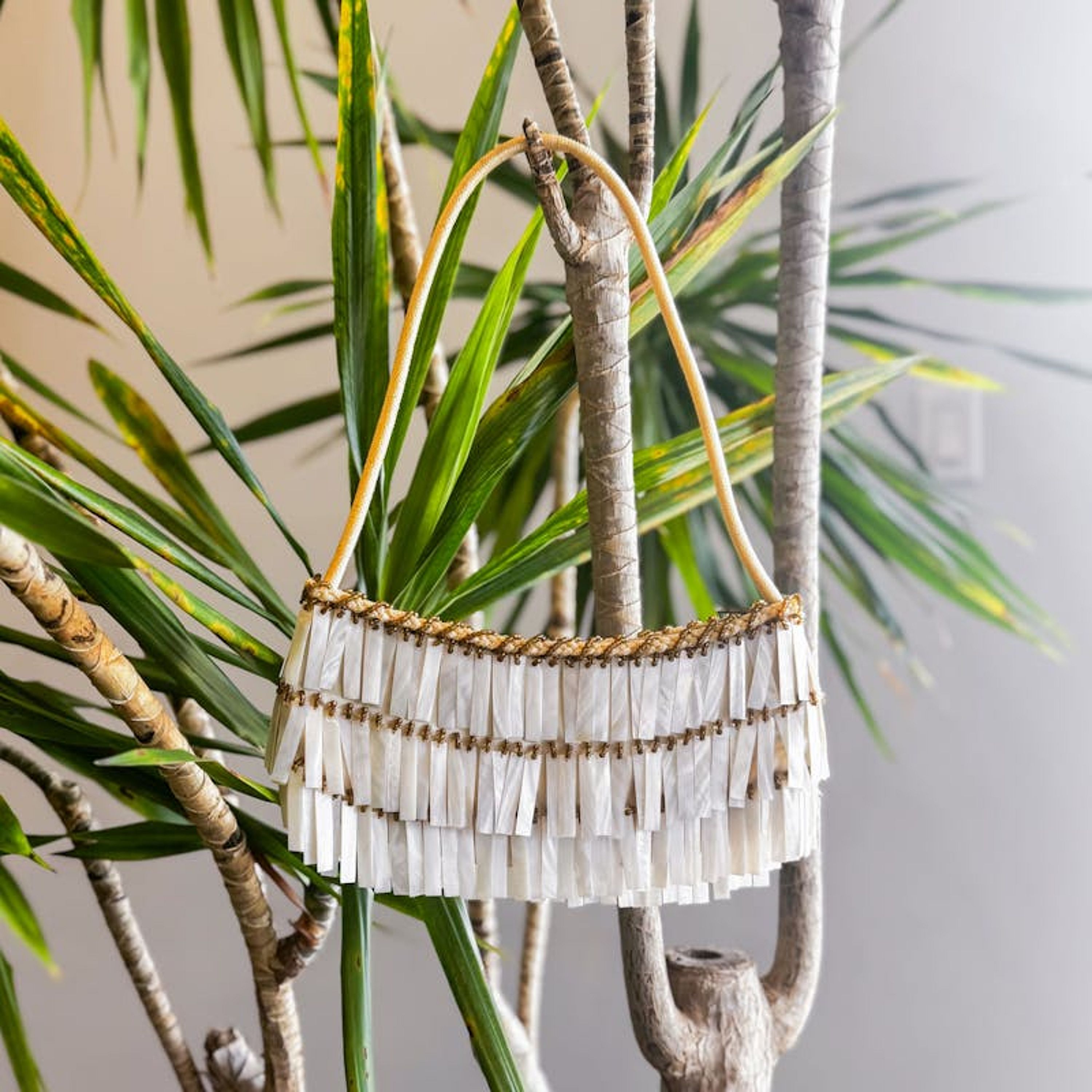 Elevate your style with this Mother of Pearl Fashion Bag, a stunning statement piece that captures the season’s hottest trend. Featuring a shimmering iridescent finish and elegant shell-inspired texture, this bag adds instant glamour to any outfit. Compact yet roomy enough for your essentials, it's perfect for weddings, brunch dates, or evening outings. Finished with gold-tone hardware and a chic top handle, it’s the ultimate blend of sophistication and coastal charm.