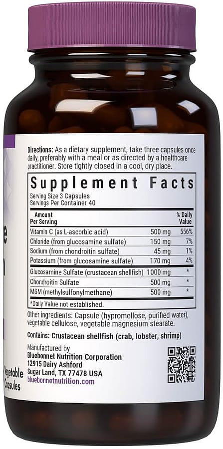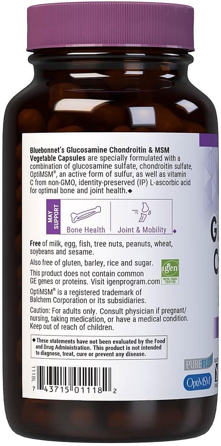 Comprehensive Joint Support – Combines glucosamine sulfate, chondroitin sulfate, OptiMSM (active sulfur), and Vitamin C (from Identity‑Preserved L‑ascorbic acid) to support bone and cartilage health and overall joint function.
