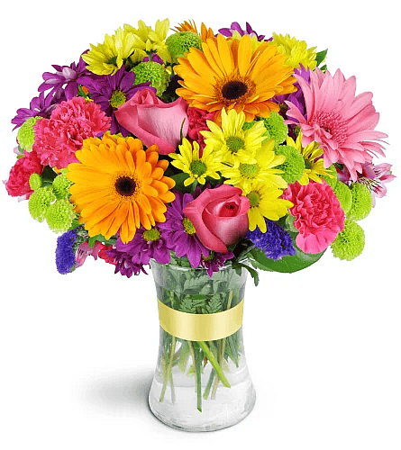 Bring a vibrant dose of joy to their day with this colorful and cheerful bouquet. An irresistible rainbow of colors will brighten their home and add an extra pep to their step.