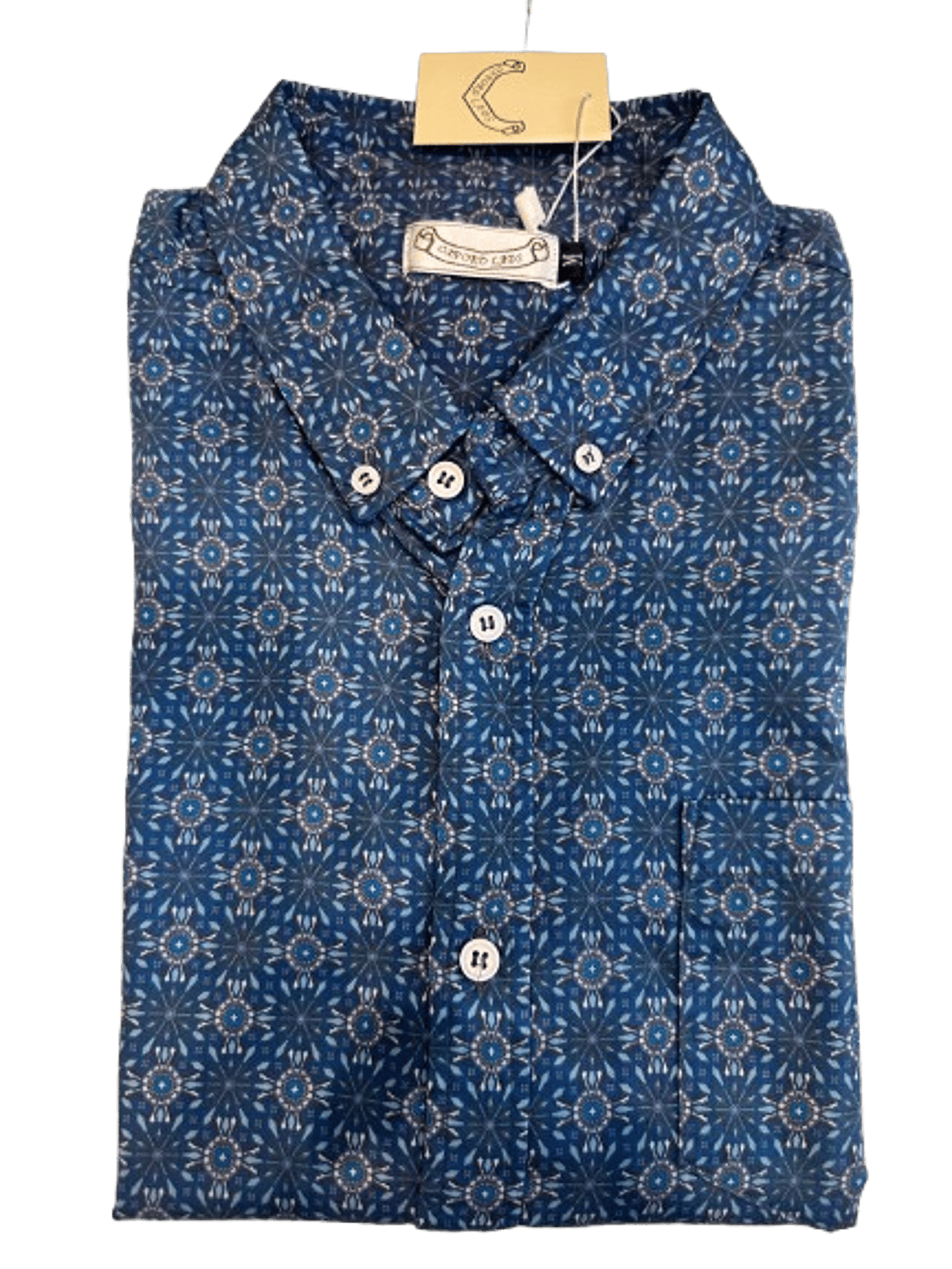 Oxford Lads - Blue Printed Short Sleeve Shirt M