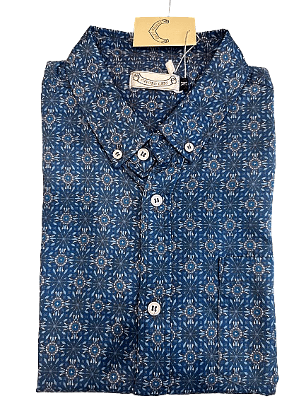 Avenue 21 Jacquard Blue Flower Pattern Button Up