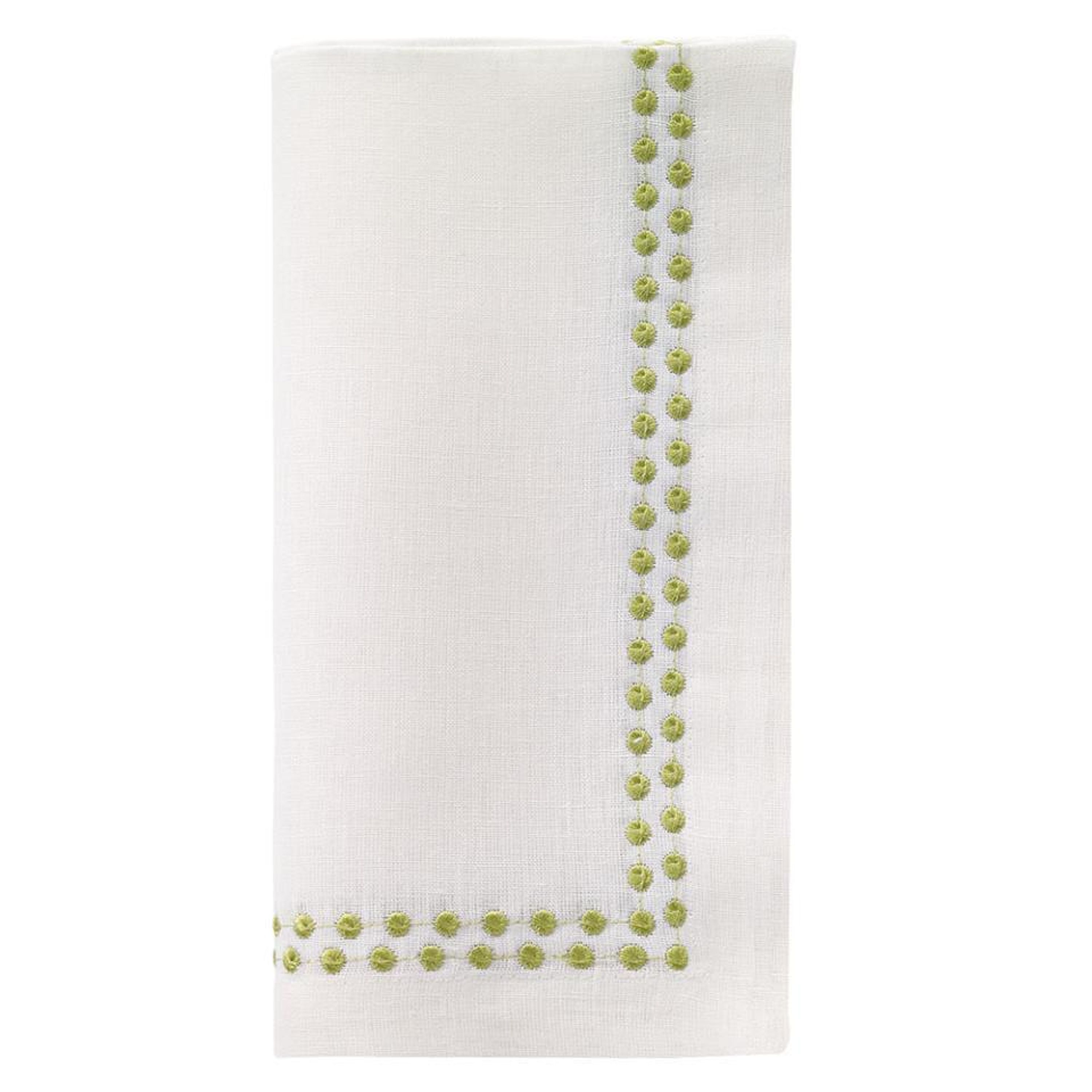 Earthy and elegant, these 21" square white napkins are trimmed with Bodrum's signature pearl-like embroidery in a soft willow green. Made from a smooth cotton and polyester blend, they blend classic elegance with a subtle pop of color. Perfect for spring gatherings, garden dinners, or everyday dining.