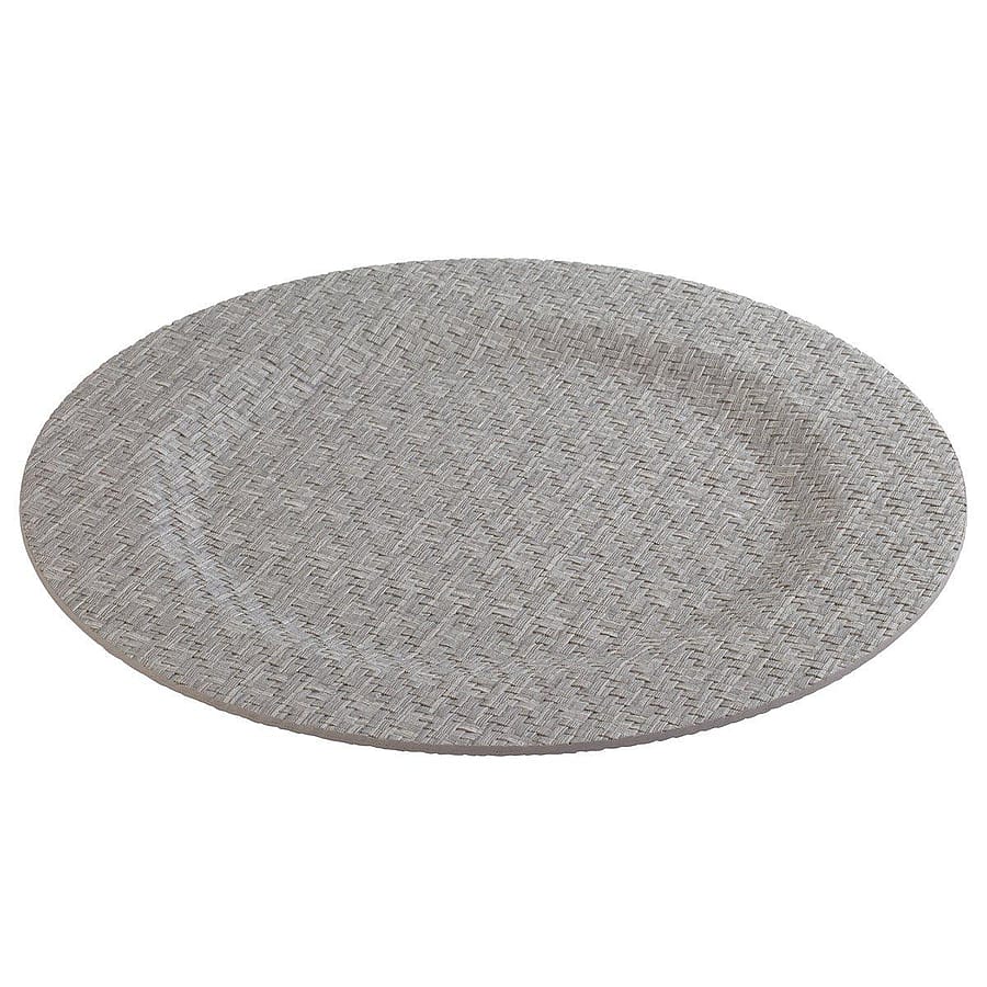 Elevate your table with the sophisticated texture of the Gray Wicker Charger Plates by Bodrum. Made from 100% phthalate-free vinyl, these chargers feature a detailed wicker weave in a versatile gray finish. Offering a perfect blend of rustic charm and modern elegance.