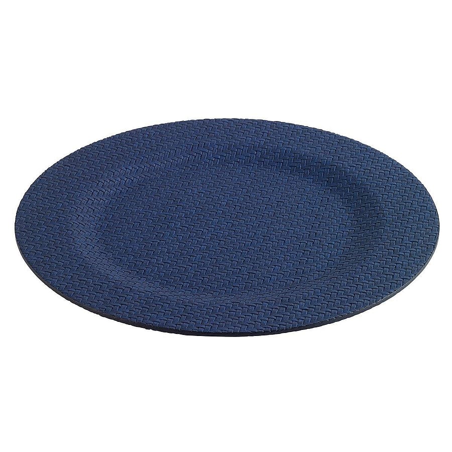 Add depth and classic style to your table with the Navy Wicker Charger Plates by Bodrum. Crafted from 100% phthalate-free vinyl, these chargers feature detailed wicker weave texture in a rich navy blue finish. Perfect for creating an elegant and timeless tablescape.