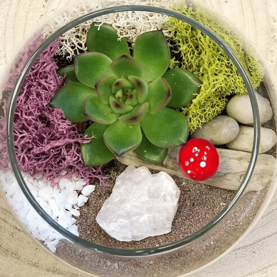 Rose Quartz Zen Garden Terrarium Kit - Bubble / Without Garden Tools