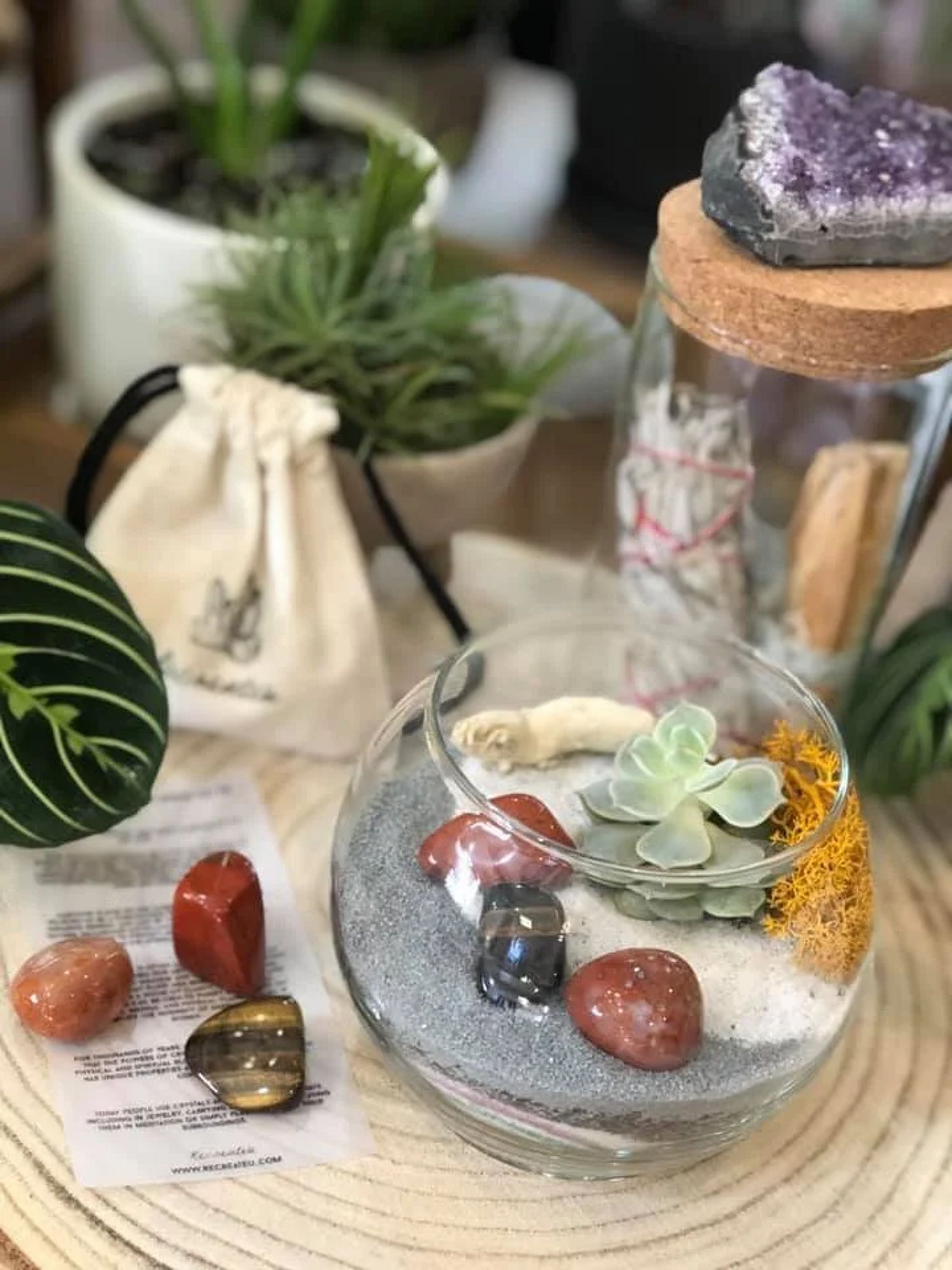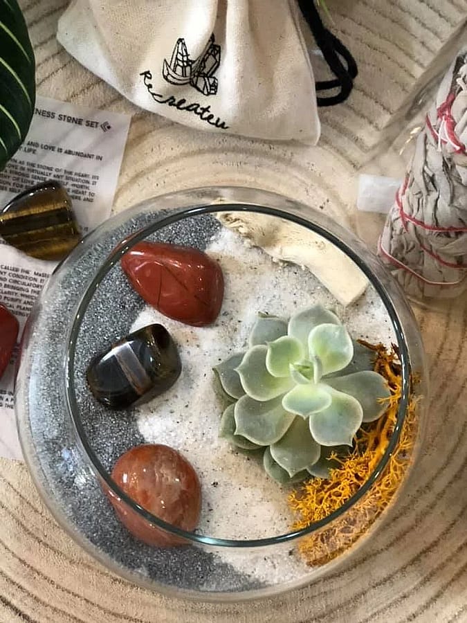 This includes everything you need to make a terrarium of your very own at home.