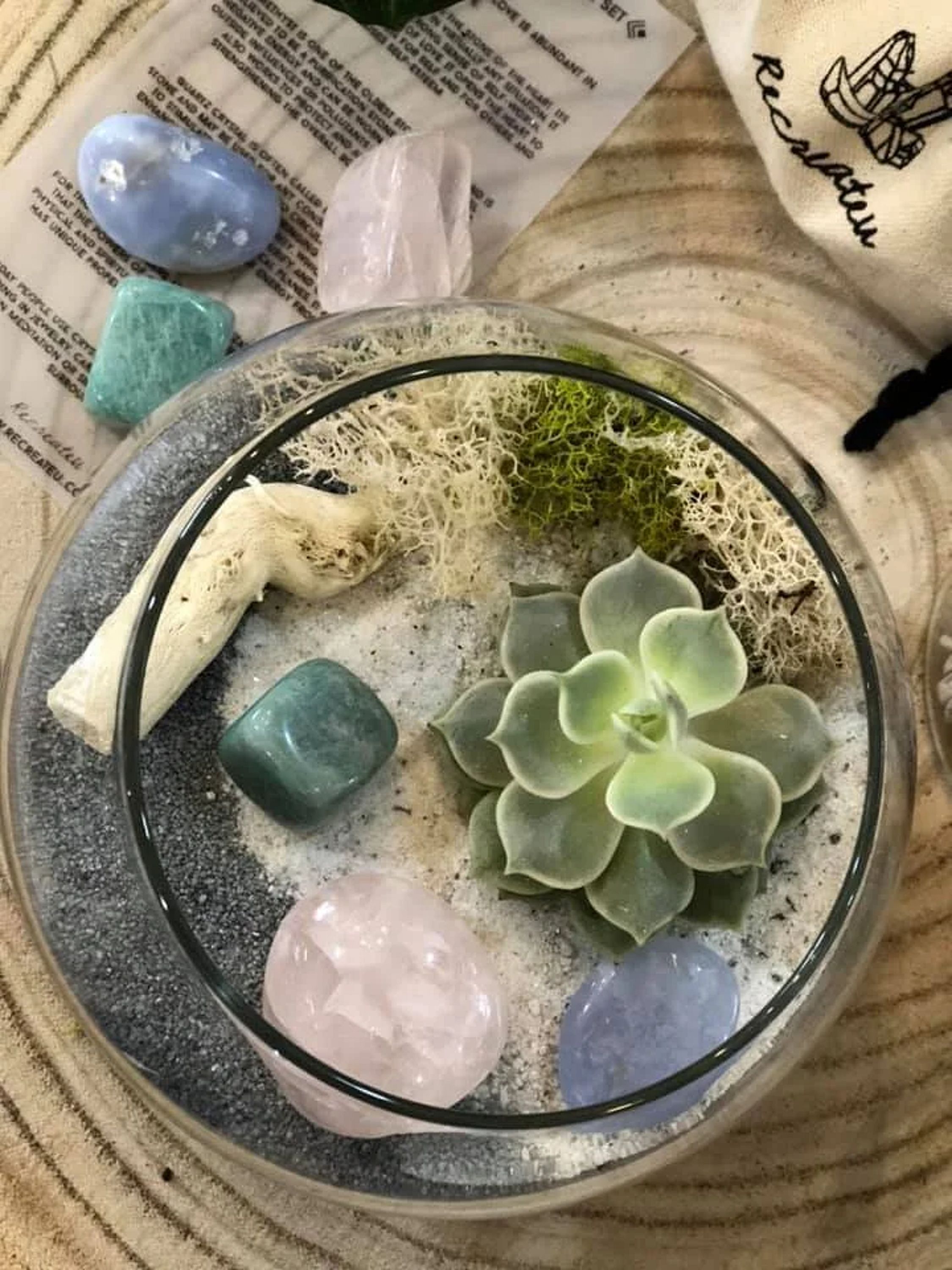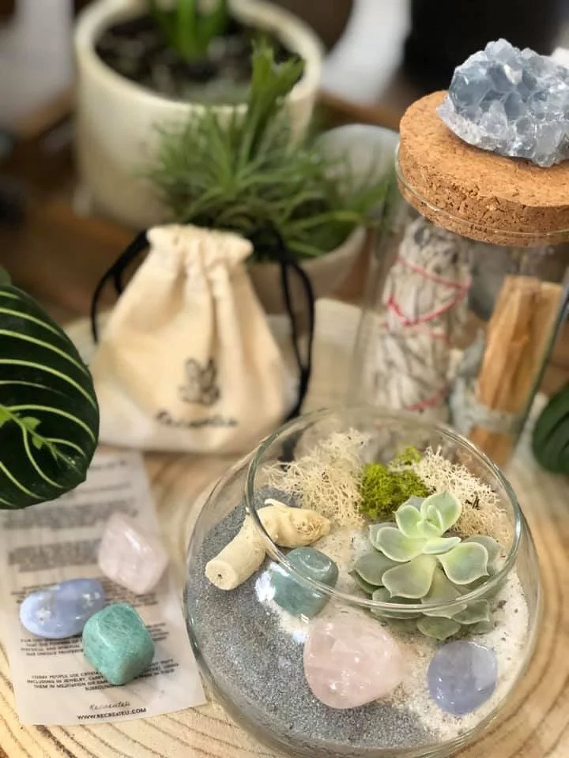 This includes everything you need to make a terrarium of your very own at home.