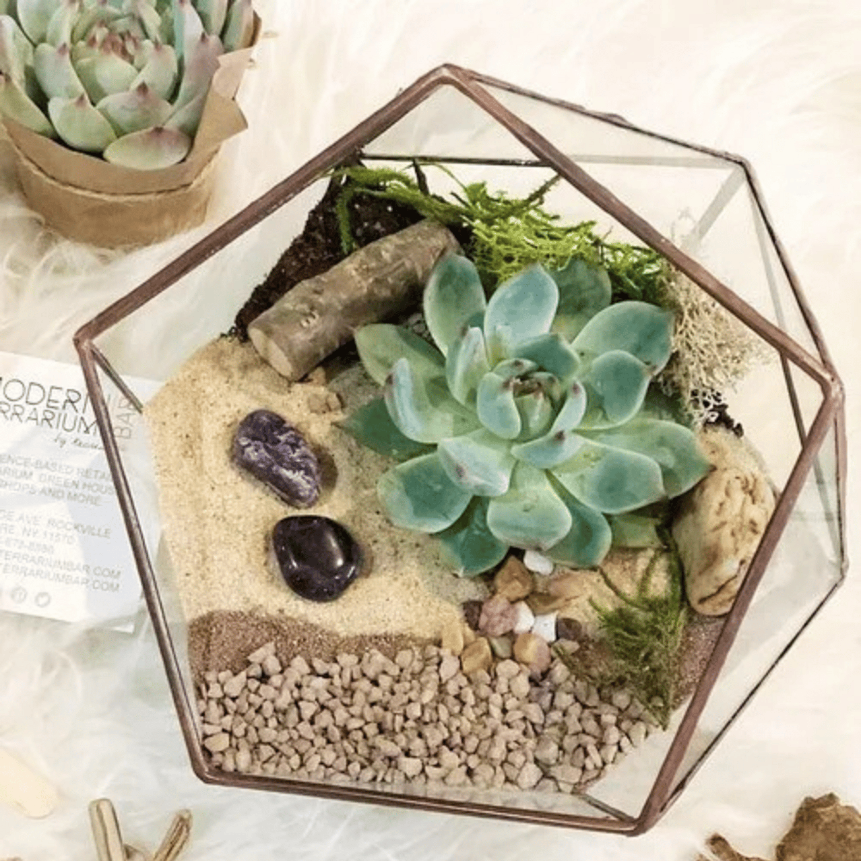 Succulent: Succulents shown in product images are representative of the plants included. Plants vary in shape, color, and style based on individual species and succulent style selected. Succulents selected for Intention terrarium are of the highest-quality plants grown in Long Island, NY.